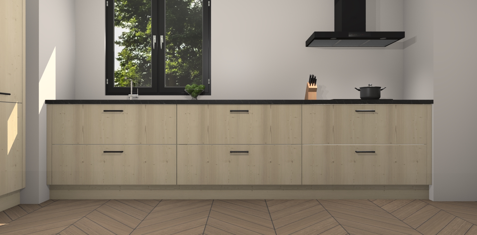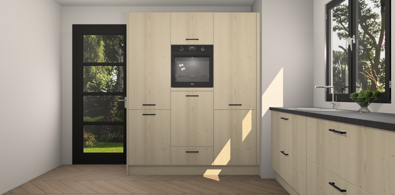 De softclose deuren openen en sluiten is ook heel eenvoudig - geniet van een moeiteloze keukenervaring, zelfs als er kinderen rondlopen. Voor extra gemak bij het plaatsen van uw bestelling bieden we ook een upgrade naar een kookplaat met geïntegreerde afzuiging.