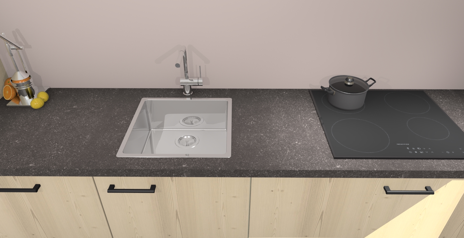 - Uitsparing van kookplaat, spoelbak en kraan dient u zelf te verzorgen.