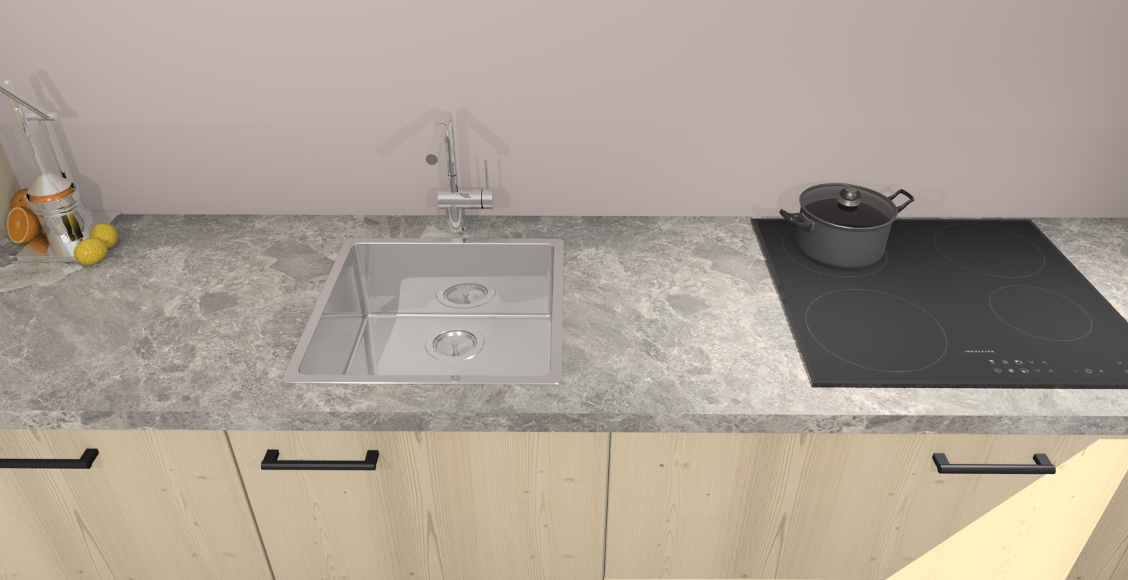 - Uitsparing van kookplaat, spoelbak en kraan dient u zelf te verzorgen.