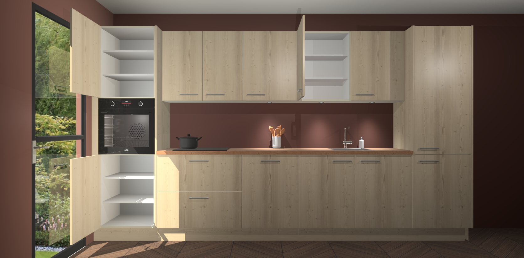 Dit is de perfecte keuken voor wie op zoek is naar een luxueuze stijl zonder zijn portemonnee te legen! Het chique ontwerp van de vuren keuken Wels voegt dat vleugje verfijning toe aan elk huis. Het gemak van voorgemonteerde kasten bespaart u talloze uren tijd en energie, zodat u veel sneller dan verwacht kunt beginnen te genieten van uw prachtige nieuwe keuken. Bovendien bedraagt de levertijd slechts 7 weken.