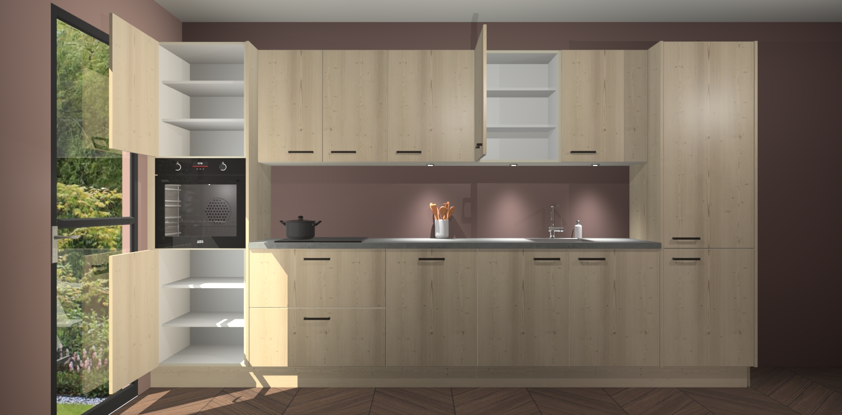 Dit is de perfecte keuken voor wie op zoek is naar een luxueuze stijl zonder zijn portemonnee te legen! Het chique ontwerp van de vuren keuken Wels voegt dat vleugje verfijning toe aan elk huis. Het gemak van voorgemonteerde kasten bespaart u talloze uren tijd en energie, zodat u veel sneller dan verwacht kunt beginnen te genieten van uw prachtige nieuwe keuken. Bovendien bedraagt de levertijd slechts 7 weken.