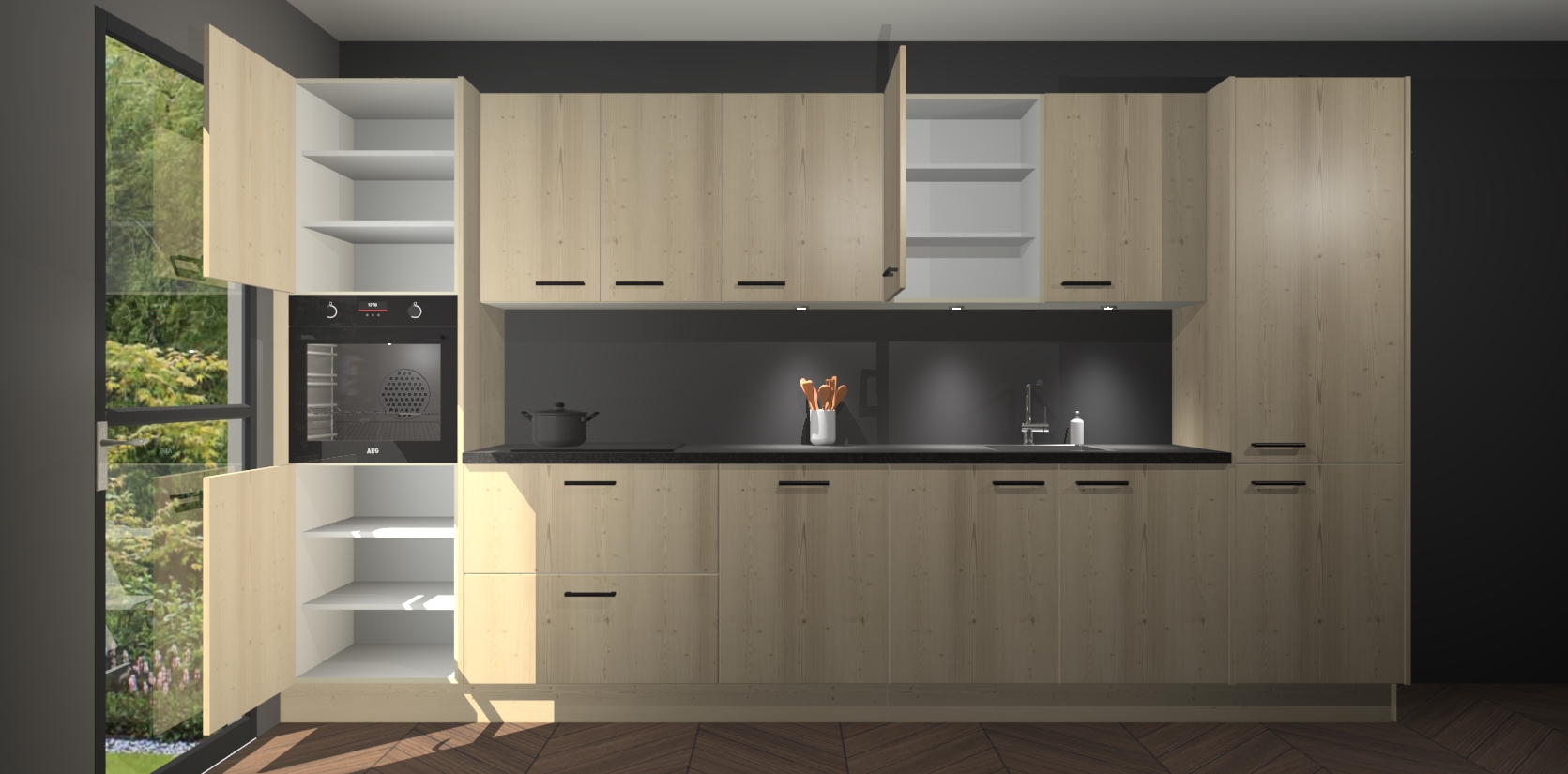 Dit is de perfecte keuken voor wie op zoek is naar een luxueuze stijl zonder zijn portemonnee te legen! Het chique ontwerp van de vuren keuken Wels voegt dat vleugje verfijning toe aan elk huis. Het gemak van voorgemonteerde kasten bespaart u talloze uren tijd en energie, zodat u veel sneller dan verwacht kunt beginnen te genieten van uw prachtige nieuwe keuken. Bovendien bedraagt de levertijd slechts 7 weken.