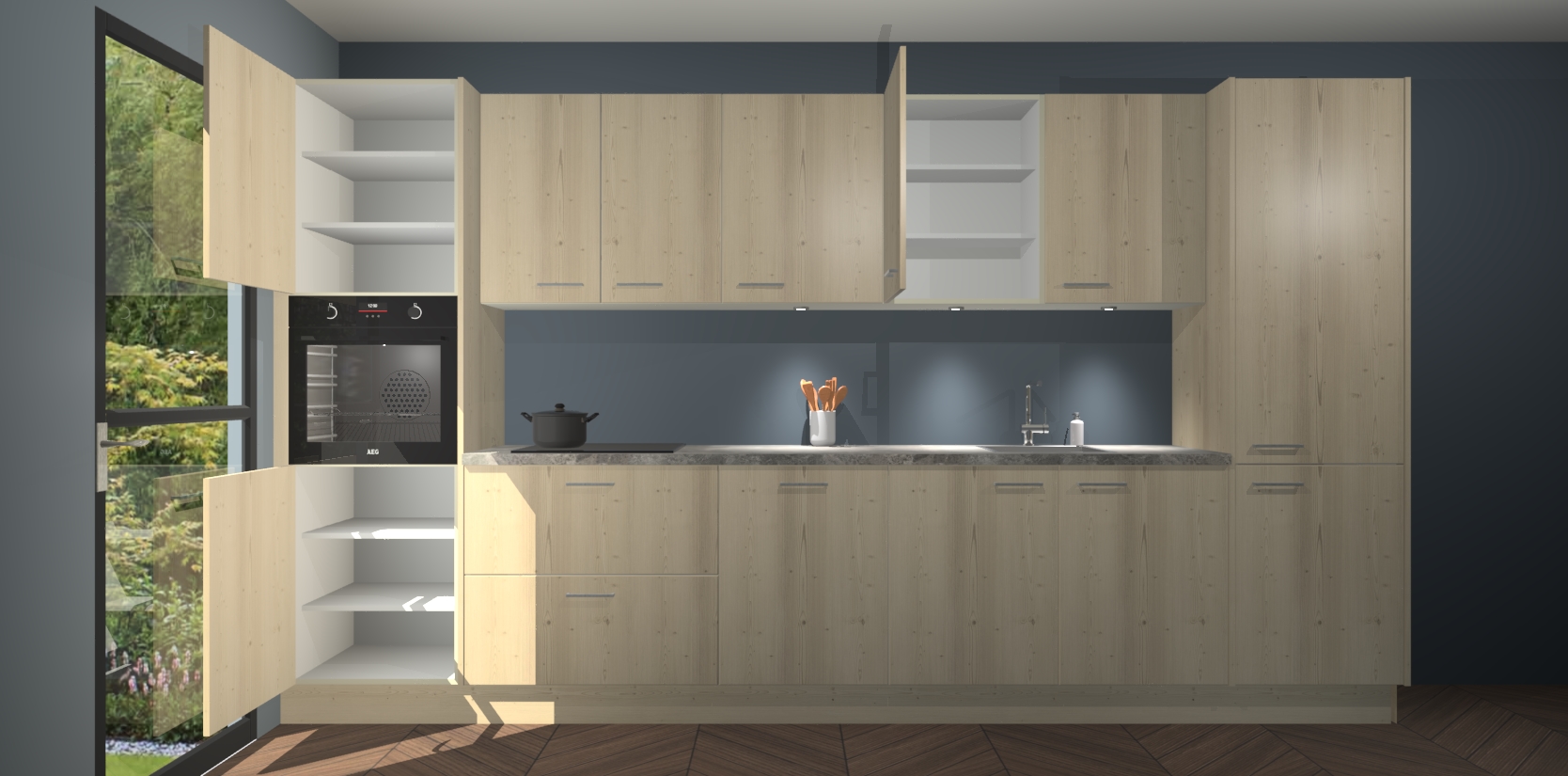Dit is de perfecte keuken voor wie op zoek is naar een luxueuze stijl zonder zijn portemonnee te legen! Het chique ontwerp van de vuren keuken Wels voegt dat vleugje verfijning toe aan elk huis. Het gemak van voorgemonteerde kasten bespaart u talloze uren tijd en energie, zodat u veel sneller dan verwacht kunt beginnen te genieten van uw prachtige nieuwe keuken. Bovendien bedraagt de levertijd slechts 7 weken.
