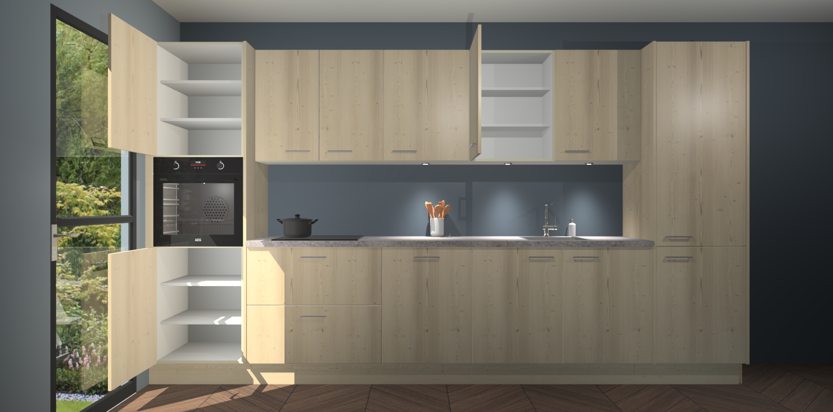 Dit is de perfecte keuken voor wie op zoek is naar een luxueuze stijl zonder zijn portemonnee te legen! Het chique ontwerp van de vuren keuken Wels voegt dat vleugje verfijning toe aan elk huis. Het gemak van voorgemonteerde kasten bespaart u talloze uren tijd en energie, zodat u veel sneller dan verwacht kunt beginnen te genieten van uw prachtige nieuwe keuken. Bovendien bedraagt de levertijd slechts 7 weken.