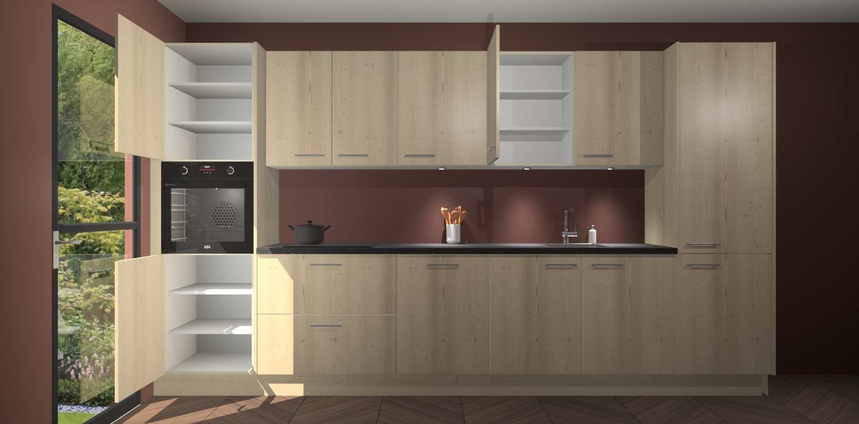 Dit is de perfecte keuken voor wie op zoek is naar een luxueuze stijl zonder zijn portemonnee te legen! Het chique ontwerp van de vuren keuken Wels voegt dat vleugje verfijning toe aan elk huis. Het gemak van voorgemonteerde kasten bespaart u talloze uren tijd en energie, zodat u veel sneller dan verwacht kunt beginnen te genieten van uw prachtige nieuwe keuken. Bovendien bedraagt de levertijd slechts 7 weken.
