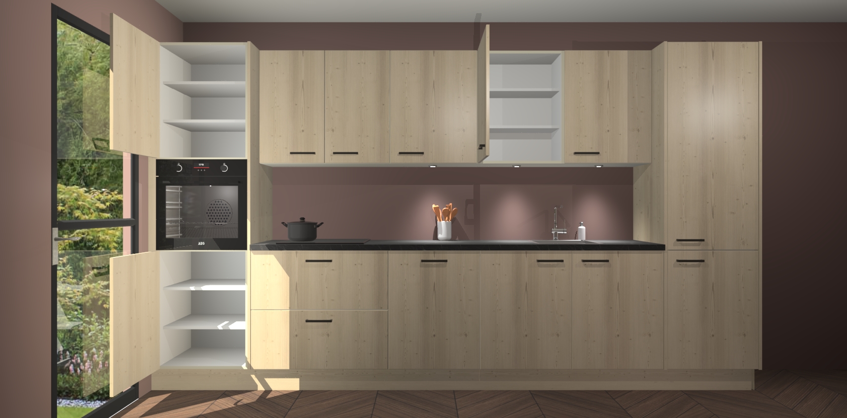 Dit is de perfecte keuken voor wie op zoek is naar een luxueuze stijl zonder zijn portemonnee te legen! Het chique ontwerp van de vuren keuken Wels voegt dat vleugje verfijning toe aan elk huis. Het gemak van voorgemonteerde kasten bespaart u talloze uren tijd en energie, zodat u veel sneller dan verwacht kunt beginnen te genieten van uw prachtige nieuwe keuken. Bovendien bedraagt de levertijd slechts 7 weken.