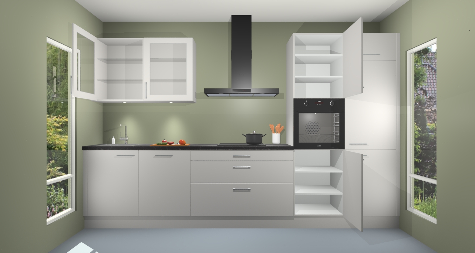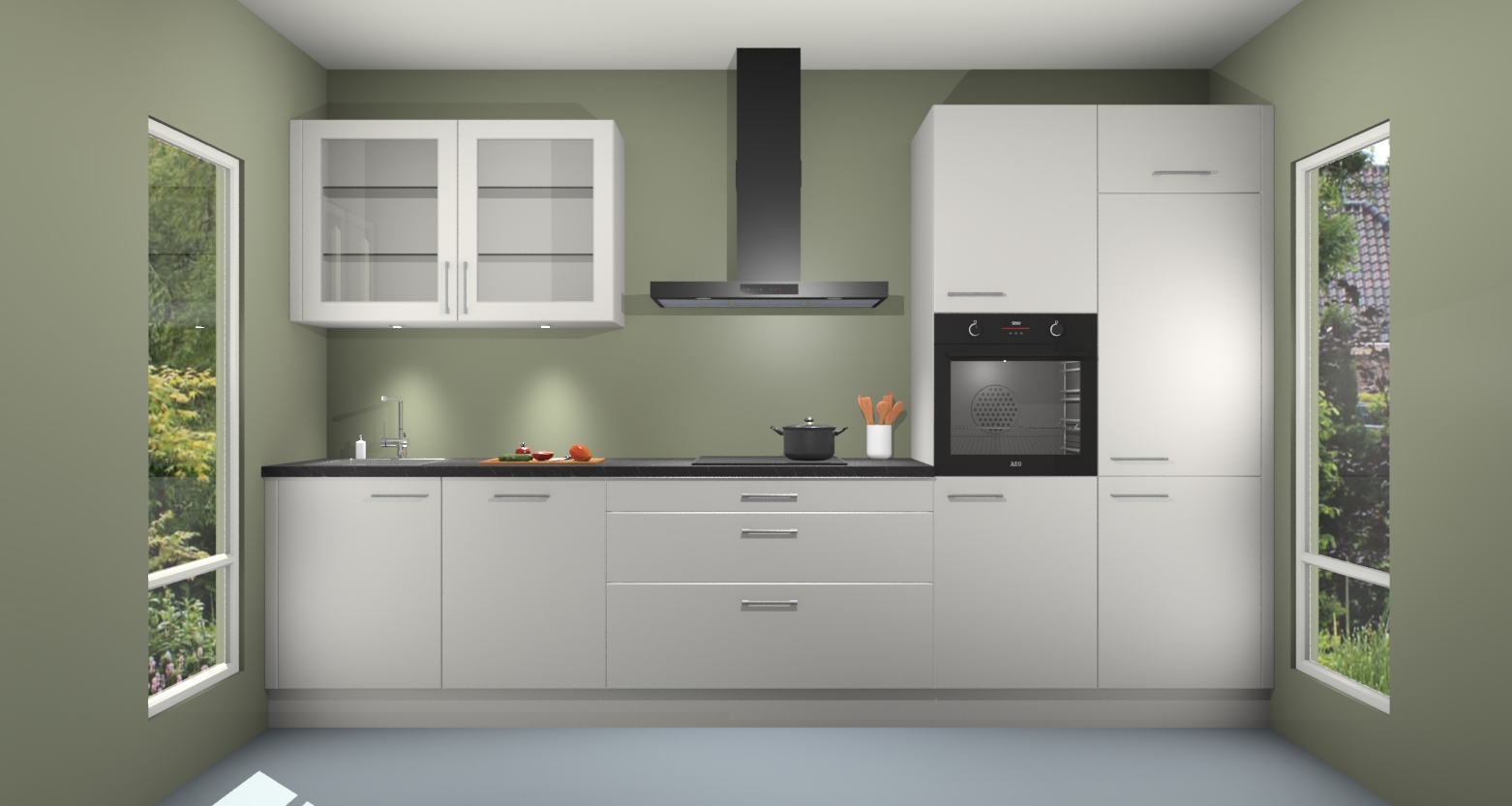 De zijdegrijs keuken Cairo is de perfecte mix van modern en tijdloos design. Met zijn prachtige glazen deuren op de bovenkastjes voegt hij echt iets speciaals en unieks toe aan elke keuken. En met vijf ingebouwde apparaten inbegrepen - een oven, inductiekookplaat, afzuigkap, vaatwasser en koelkast - kunt u deze keuken echt helemaal van uzelf maken! U kunt na bestelling ook upgraden naar AEG voor een nog hogere kwaliteitservaring.