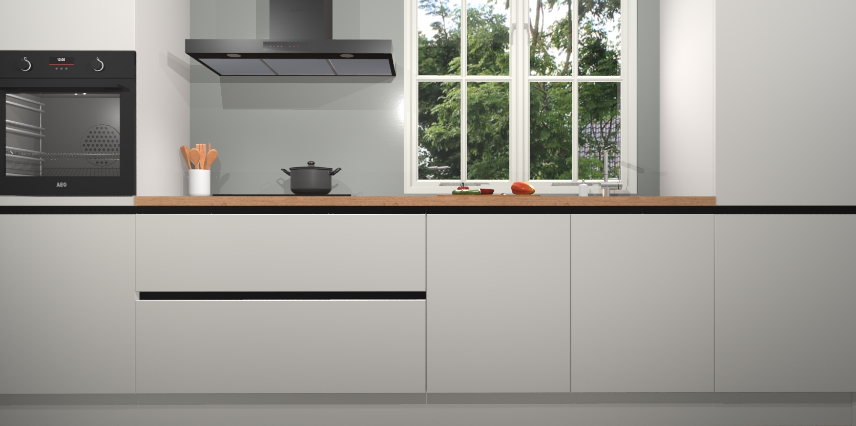 Inclusief plinten, stelpoten en werkblad