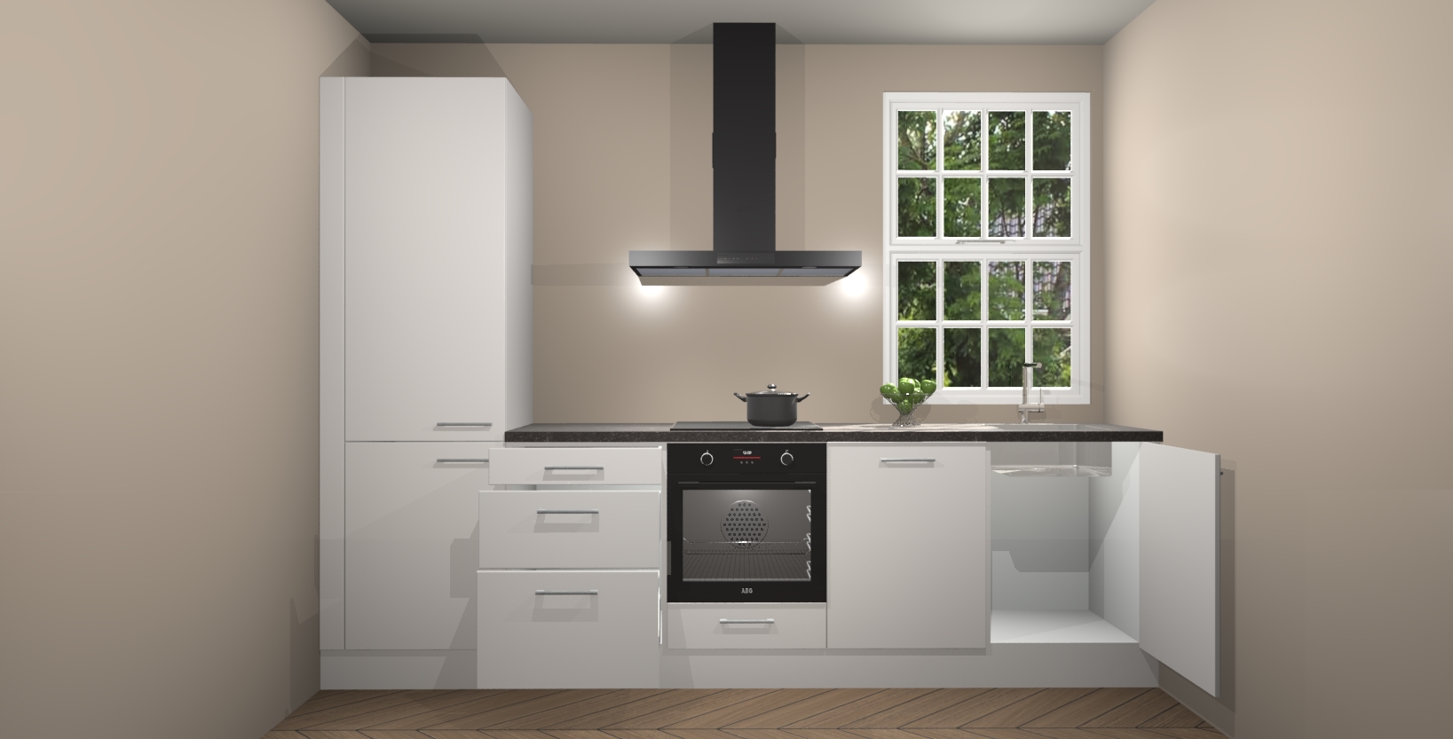 Inclusief plinten, stelpoten en werkblad