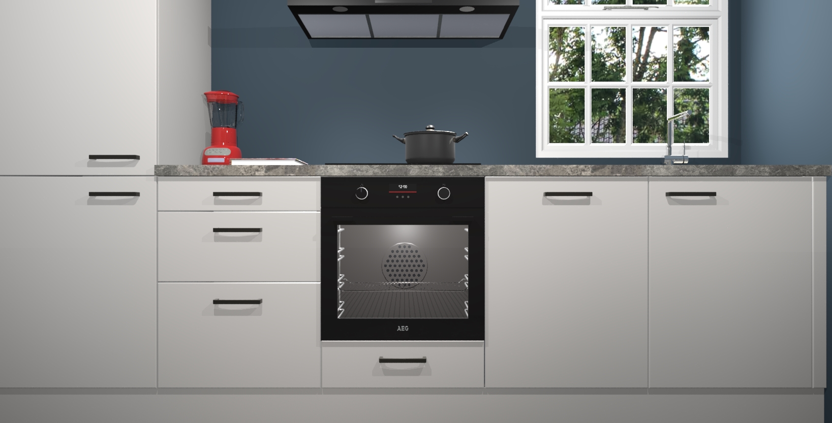 De Zijdegrijze keuken Bangladesh is gemaakt van de beste materialen op de markt, dus u kunt erop vertrouwen dat hij u niet in de steek zal laten. Bovendien kunt u hem gemakkelijk upgraden naar het AEG-model als u er nog meer uit wilt halen!