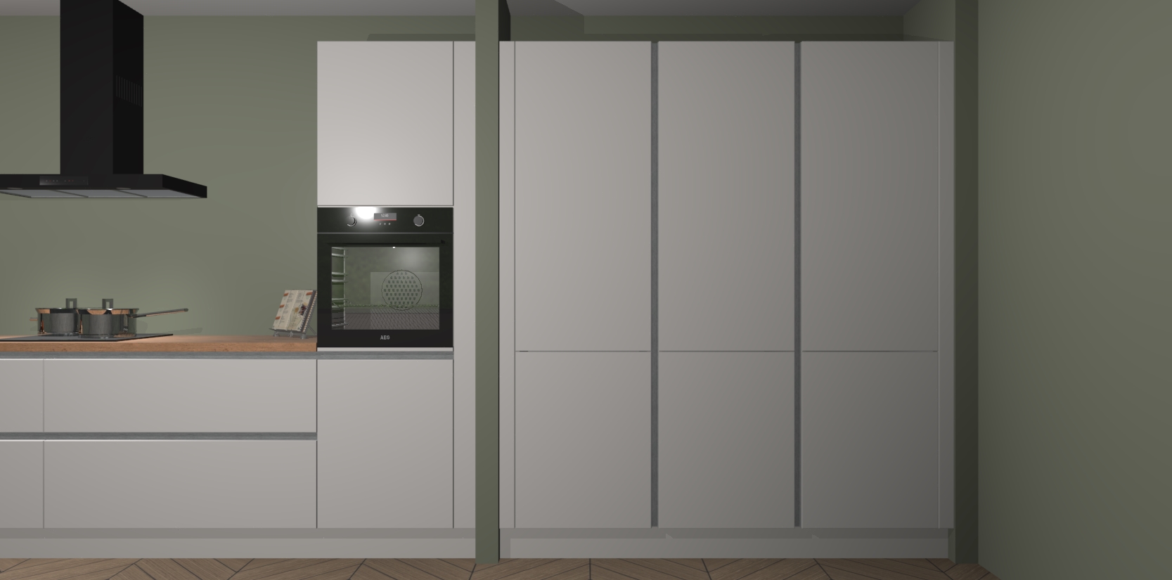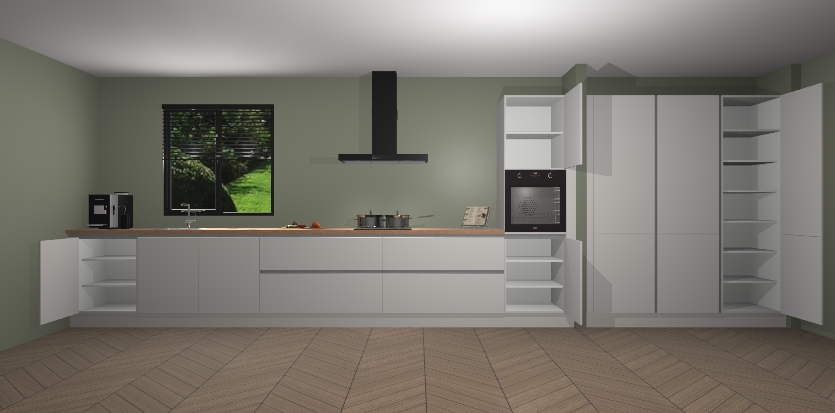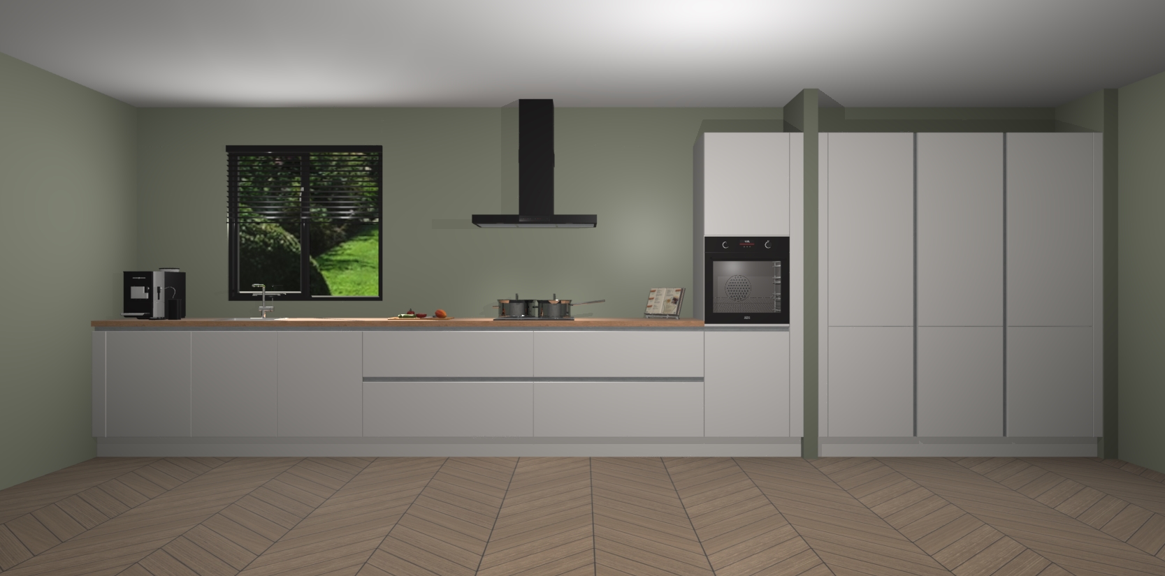 Een stijlvolle en praktische keuken als deze mag gezien worden. Dankzij de prachtige matte afwerking wordt de keuken gemakkelijk het middelpunt van uw huis - hij ziet er geweldig uit onder allerlei lichtomstandigheden, van dag tot nacht!