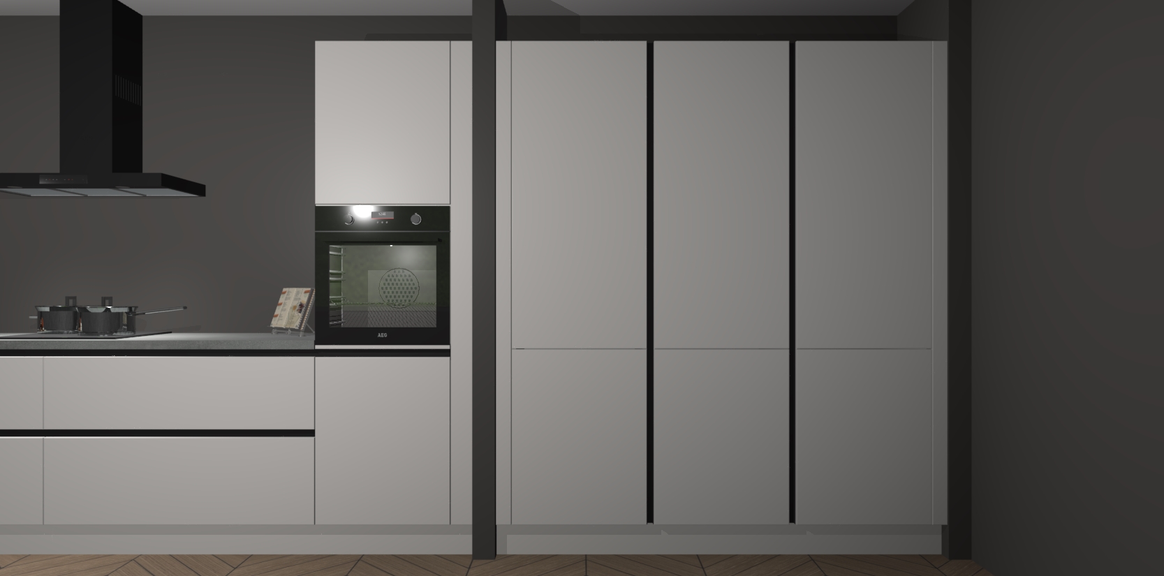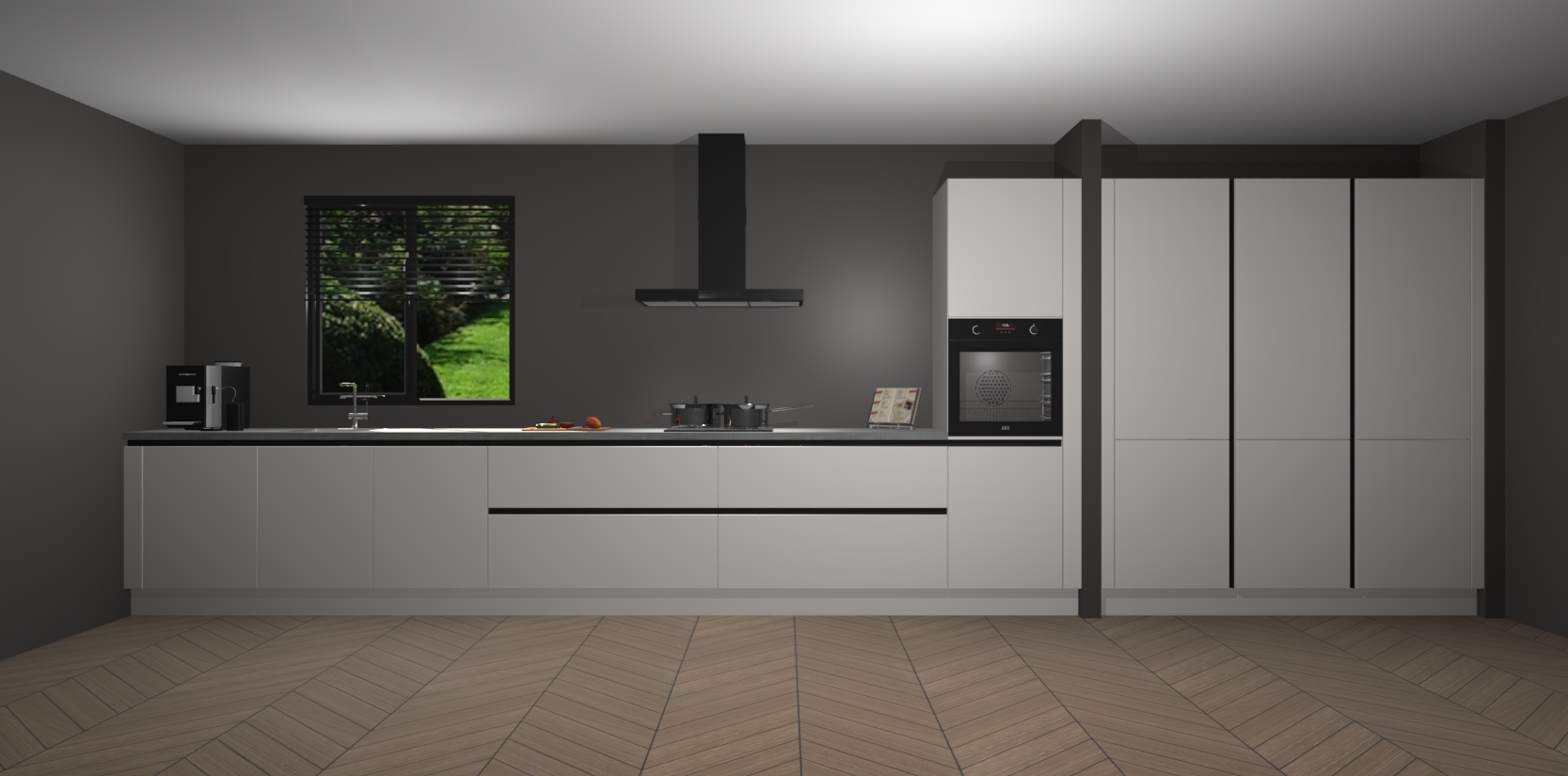 Een stijlvolle en praktische keuken als deze mag gezien worden. Dankzij de prachtige matte afwerking wordt de keuken gemakkelijk het middelpunt van uw huis - hij ziet er geweldig uit onder allerlei lichtomstandigheden, van dag tot nacht!