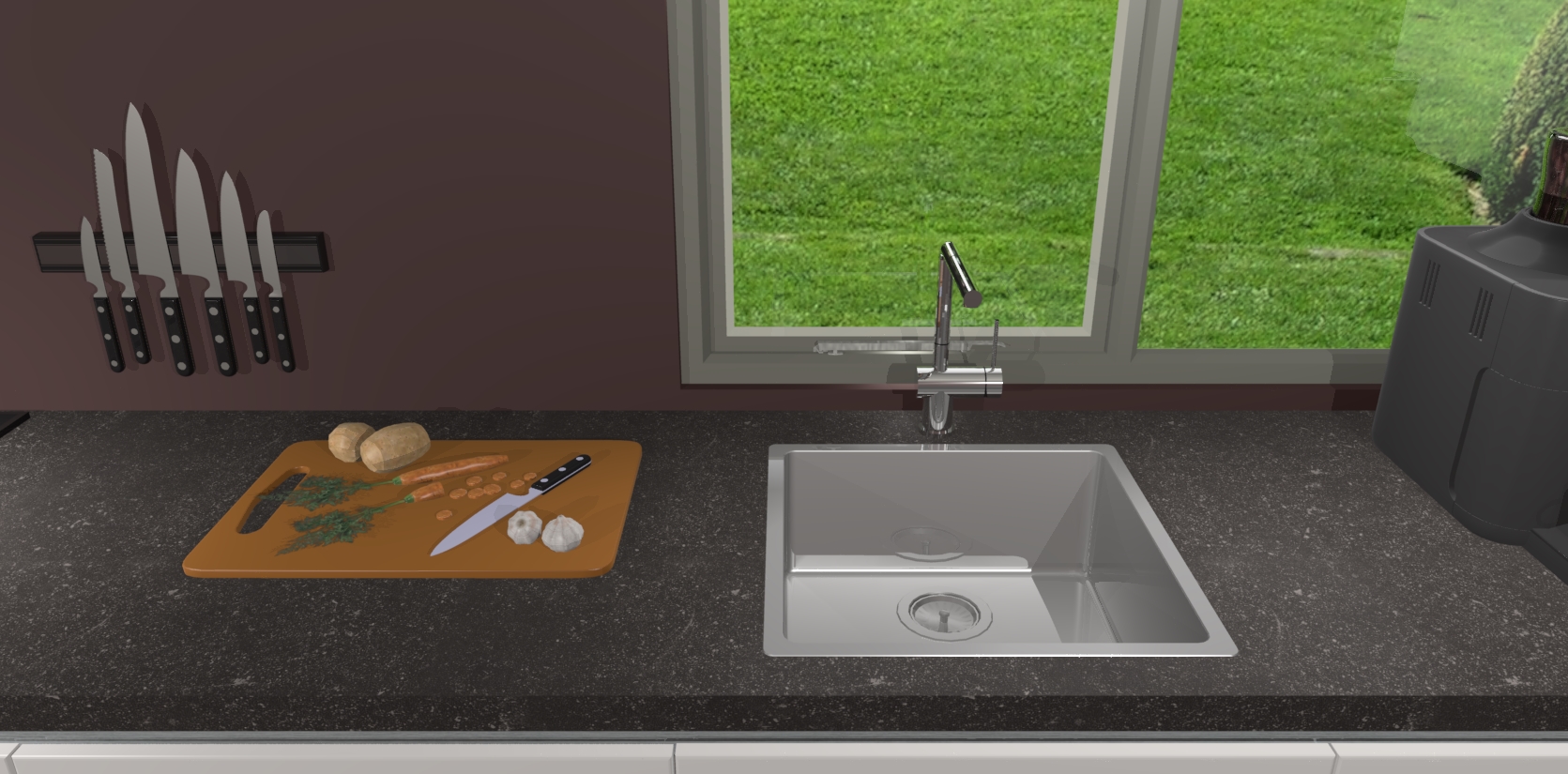 - De spoelbak is nog niet in gevreesd. Dit dient tijdens het werk gedaan te worden