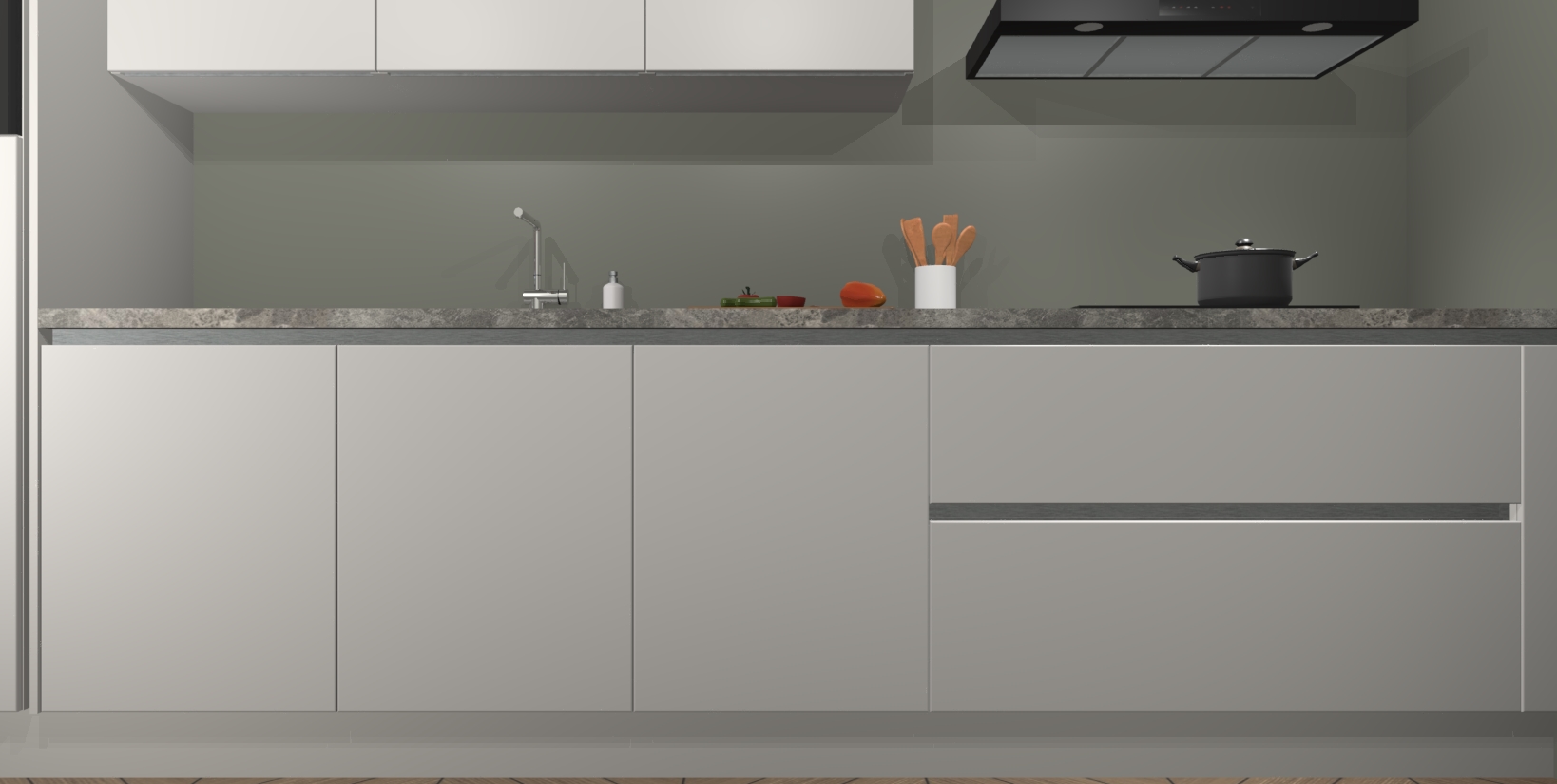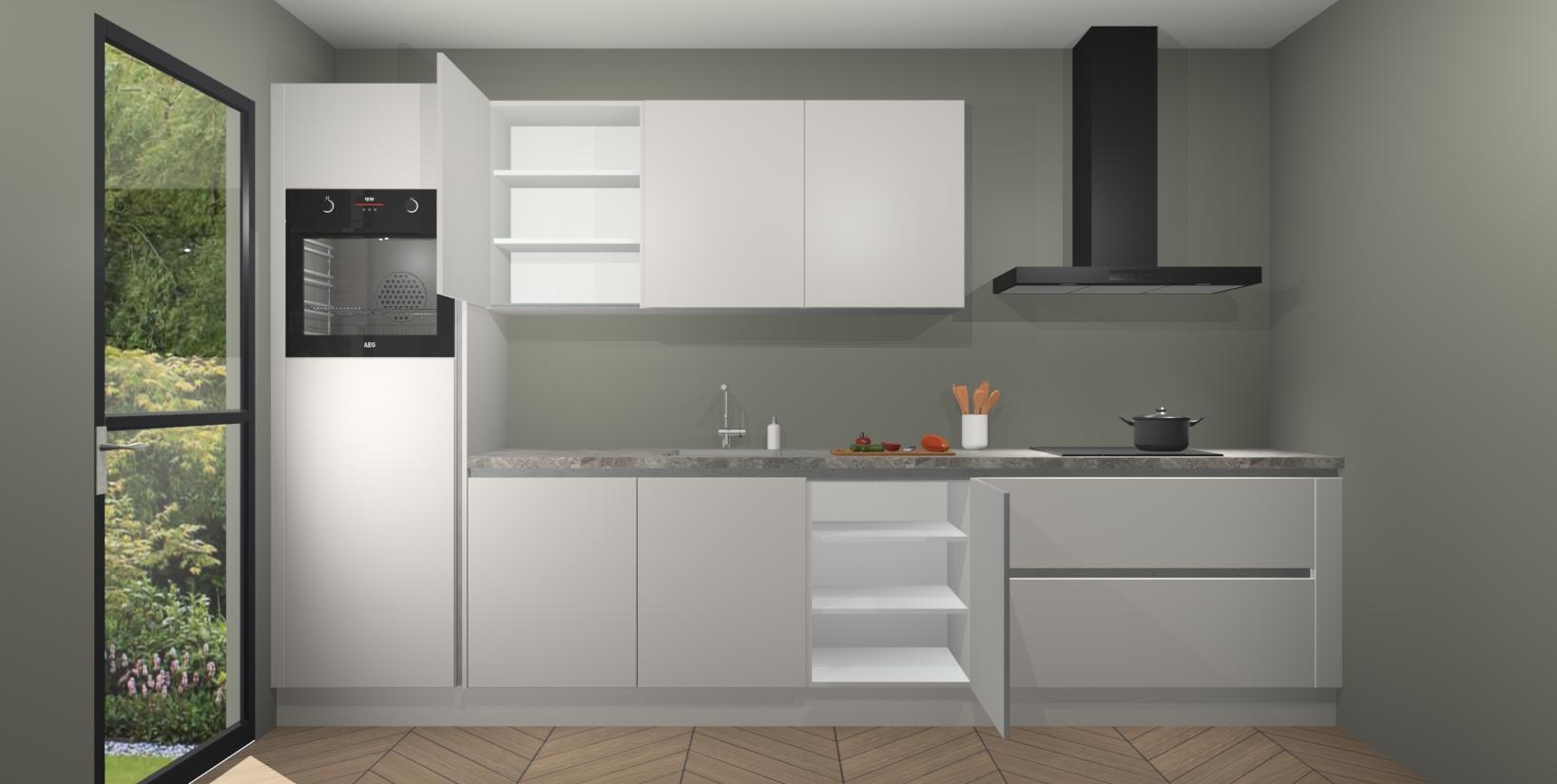 De Zijdegrijze greeploze keuken Asmara: waar tijdloze elegantie en robuuste constructie elkaar ontmoeten. Door de combinatie van luxe en veerkracht zal deze keuken u de komende jaren goed van dienst zijn. De prachtige zachte look zorgt voor een tijdloze esthetiek die niet zal slijten met de tijd, waardoor u een decoratieve toevoeging aan uw huis creëert. Onze hoogwaardige kasten zijn gebouwd om lang mee te gaan en is zeer duurzaam en bestand tegen krassen, waardoor het ideaal is voor drukke gezinnen.