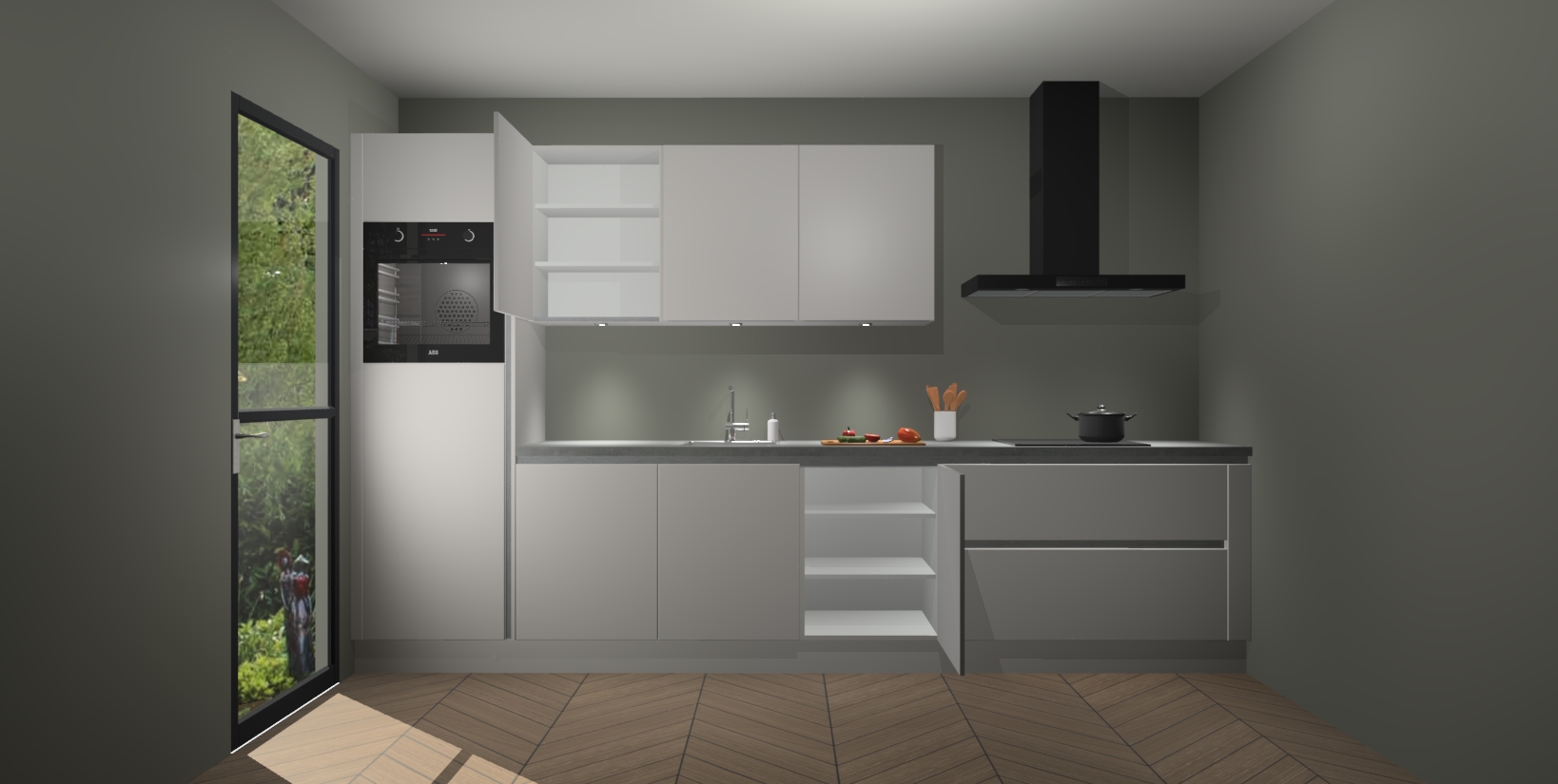 De Zijdegrijze greeploze keuken Asmara: waar tijdloze elegantie en robuuste constructie elkaar ontmoeten. Door de combinatie van luxe en veerkracht zal deze keuken u de komende jaren goed van dienst zijn. De prachtige zachte look zorgt voor een tijdloze esthetiek die niet zal slijten met de tijd, waardoor u een decoratieve toevoeging aan uw huis creëert. Onze hoogwaardige kasten zijn gebouwd om lang mee te gaan en is zeer duurzaam en bestand tegen krassen, waardoor het ideaal is voor drukke gezinnen.