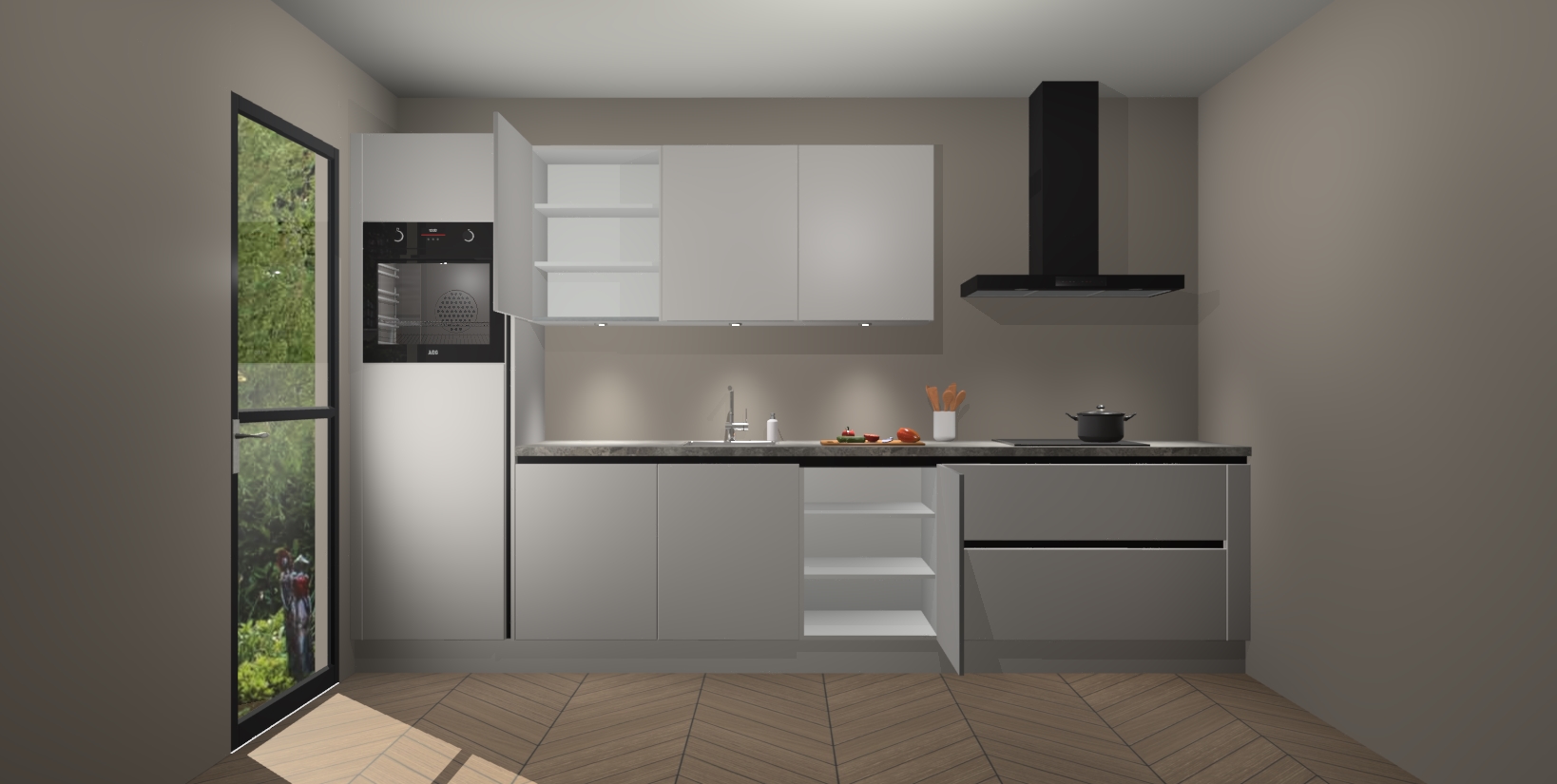 De Zijdegrijze greeploze keuken Asmara: waar tijdloze elegantie en robuuste constructie elkaar ontmoeten. Door de combinatie van luxe en veerkracht zal deze keuken u de komende jaren goed van dienst zijn. De prachtige zachte look zorgt voor een tijdloze esthetiek die niet zal slijten met de tijd, waardoor u een decoratieve toevoeging aan uw huis creëert. Onze hoogwaardige kasten zijn gebouwd om lang mee te gaan en is zeer duurzaam en bestand tegen krassen, waardoor het ideaal is voor drukke gezinnen.