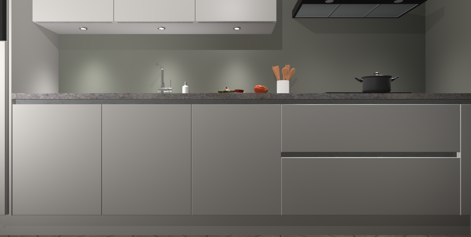 Inclusief plinten, stelpoten en werkblad
