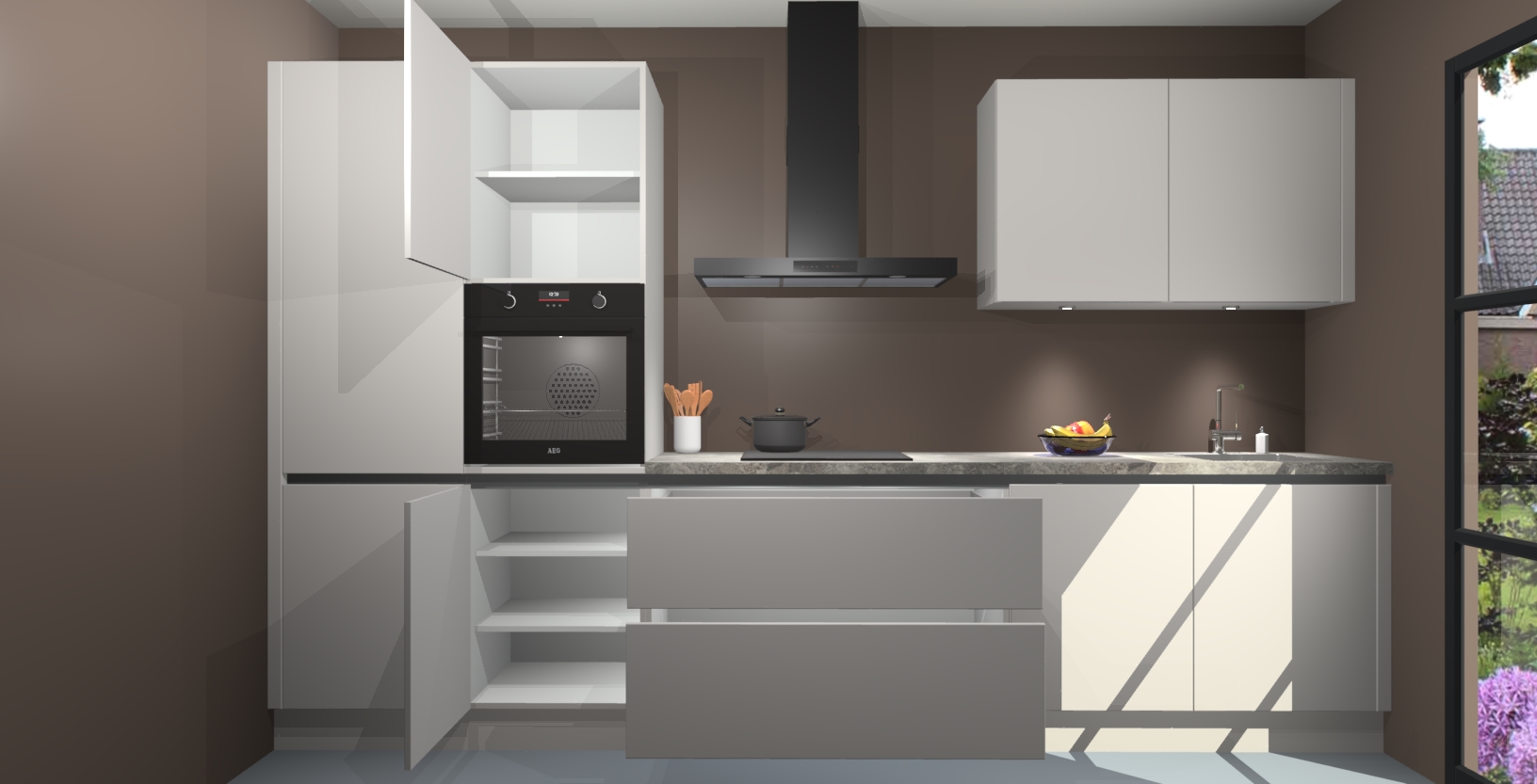 Bovendien is er veel opbergruimte met deze pracht keuken, zodat u ervoor kunt zorgen dat uw kasten en lades altijd georganiseerd zijn - iets wat iedereen waardeert in een drukke keuken. Niemand houdt van een lawaaierige keuken als u de deuren opent en sluit; dankzij de soft close technologie gaat het openen en sluiten van de deuren geruisloos! Bovendien krijgt u de levering binnen 7 weken - hoe geweldig is dat?