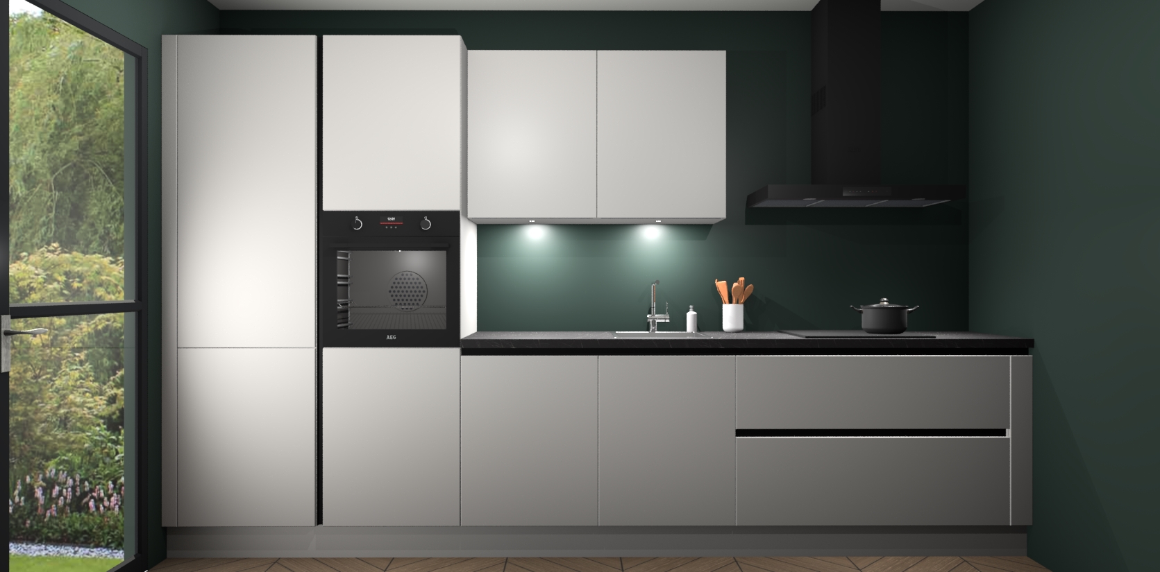 De Zijdegrijze greeploze keuken Groenland: waar tijdloze elegantie en robuuste constructie elkaar ontmoeten. Door de combinatie van luxe en veerkracht zal deze keuken u de komende jaren goed van dienst zijn. De prachtige zachte look zorgt voor een tijdloze esthetiek die niet zal slijten met de tijd, waardoor u een decoratieve toevoeging aan uw huis creëert. Onze hoogwaardige kasten zijn gebouwd om lang mee te gaan en is zeer duurzaam en bestand tegen krassen, waardoor het ideaal is voor drukke gezinnen.