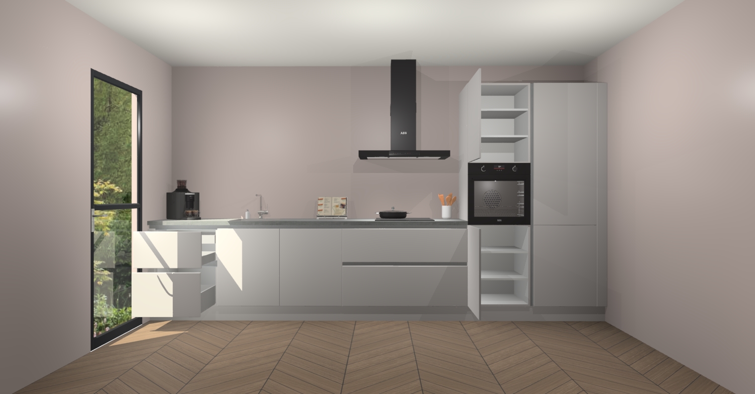 De Zijdegrijze greeploze keuken Leuven is de perfecte mix van modern en tijdloos design. Met zijn prachtige glazen deuren op de bovenkastjes voegt hij echt iets speciaals en unieks toe aan elke keuken. En met vijf ingebouwde apparaten inbegrepen - een oven, inductiekookplaat, afzuigkap, vaatwasser en koelkast - kunt u deze keuken echt helemaal van uzelf maken! U kunt na bestelling ook upgraden naar AEG voor een nog hogere kwaliteitservaring.