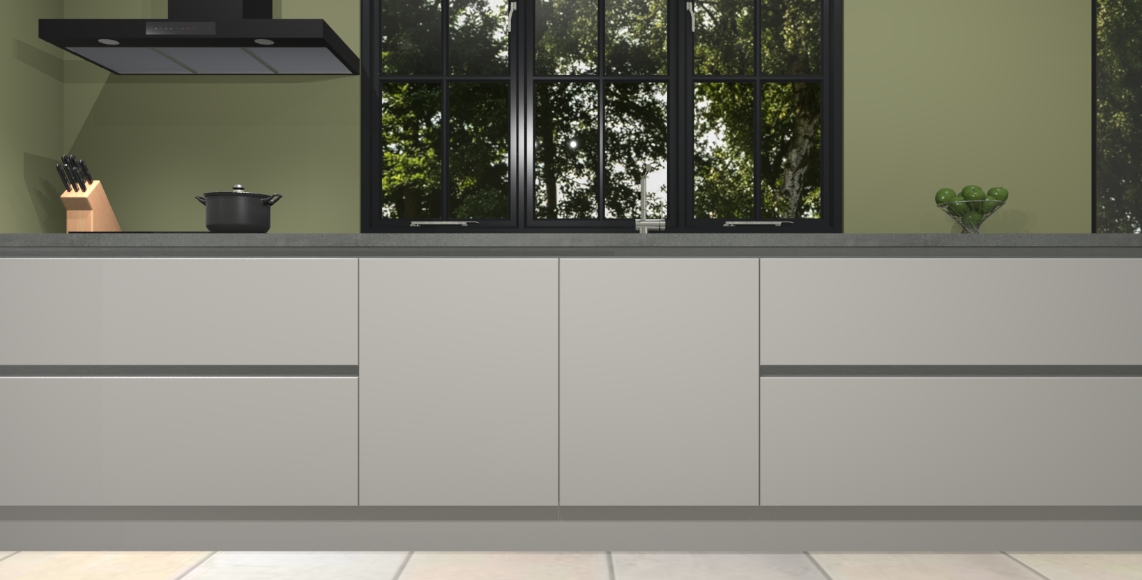 De softclose deuren openen en sluiten is ook heel eenvoudig - geniet van een moeiteloze keukenervaring, zelfs als er kinderen rondlopen. Voor extra gemak bij het plaatsen van uw bestelling bieden we ook een upgrade naar een kookplaat met geïntegreerde afzuiging.