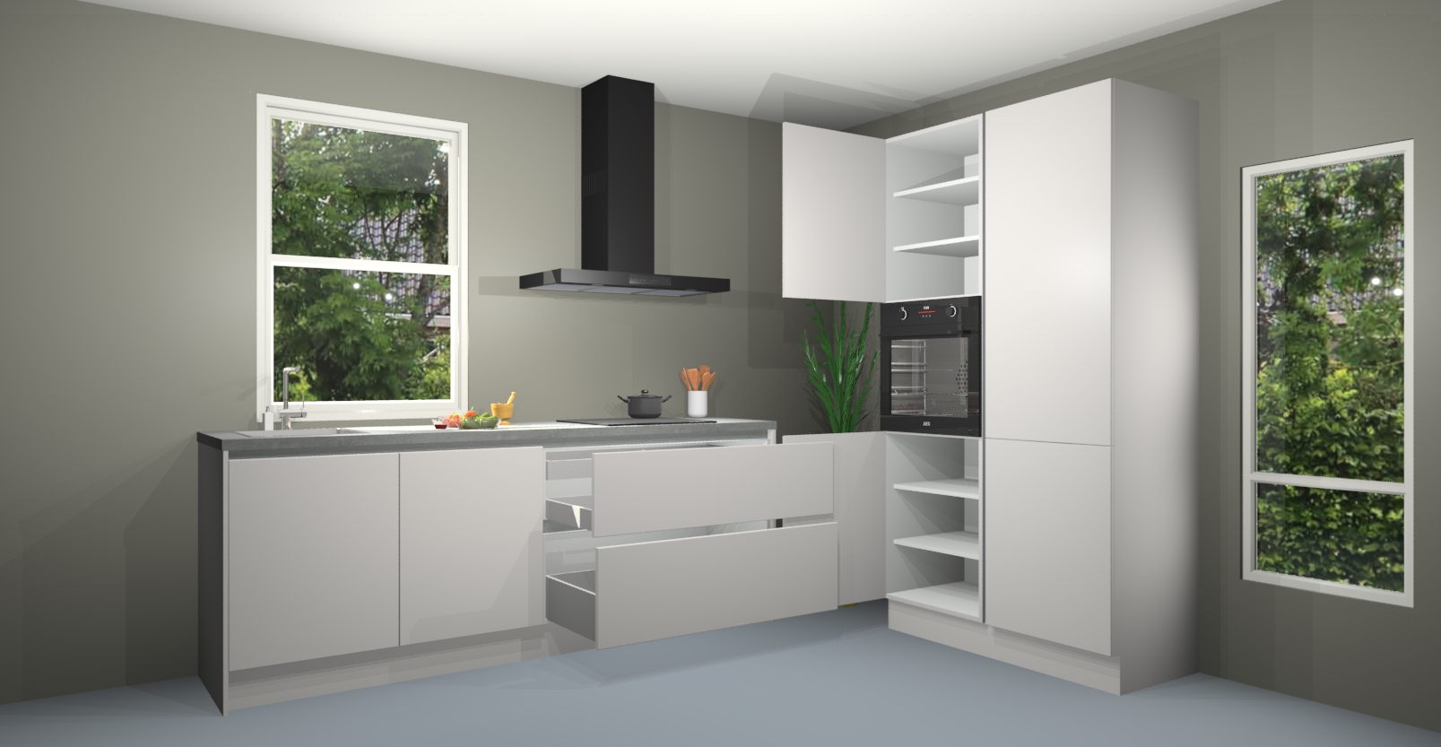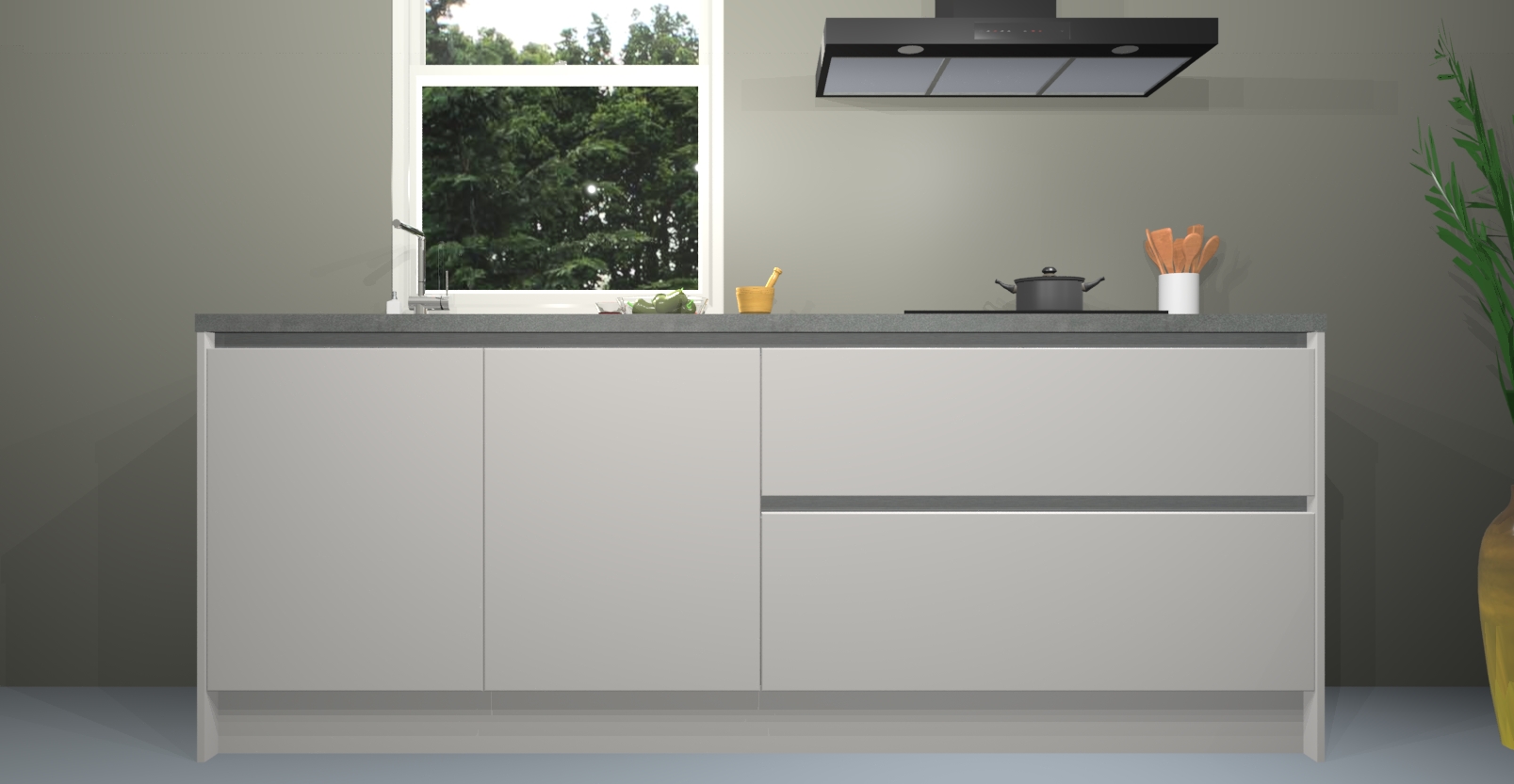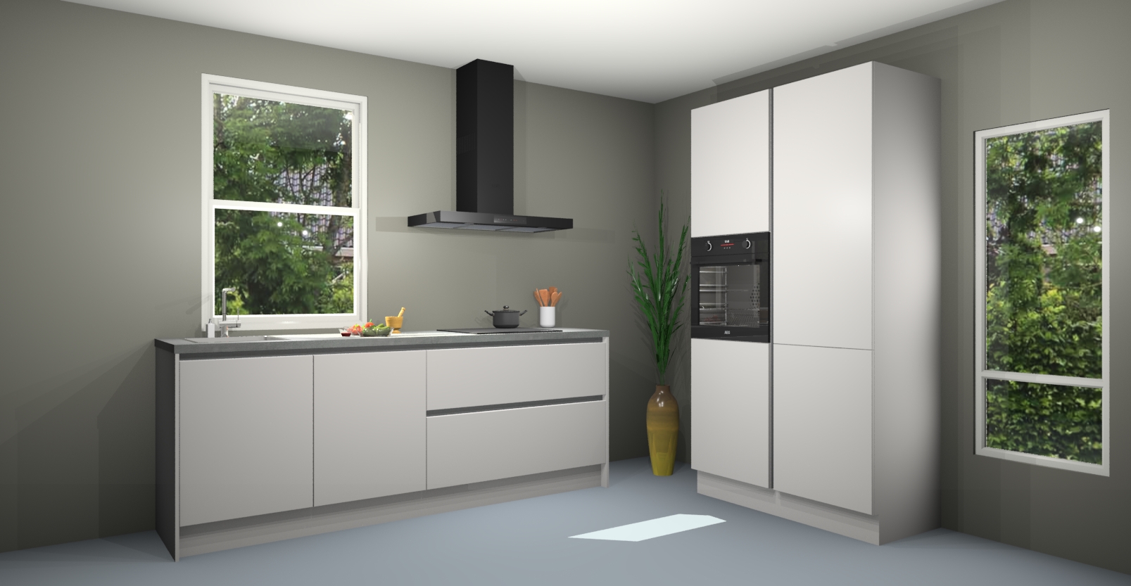 De Zijdegrijze greeploze keuken Monaco heeft voldoende opbergruimte om uw keukenbenodigdheden georganiseerd en netjes te houden. Geniet van het gemak van de soft-close deuren, die deze stijlvolle look perfect afmaken. Maar dat is nog niet alles. Met de Zijdegrijze greeploze keuken Monaco krijgt u maar liefst 5 ingebouwde apparaten: een oven, inductiekookplaat, afzuigkap, vaatwasser en koelkast. Deze kunnen gemakkelijk worden geüpgraded naar AEG als ze besteld zijn.