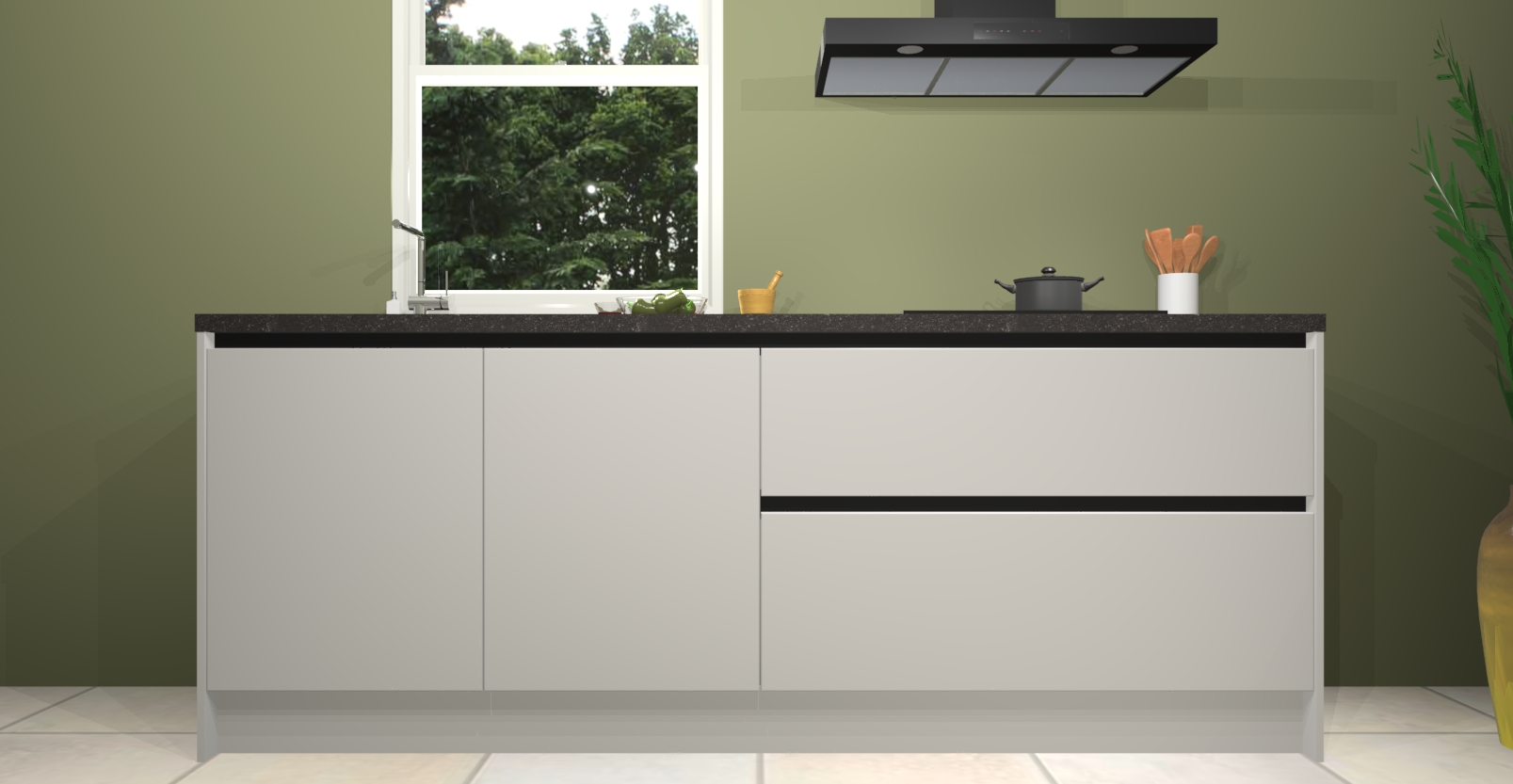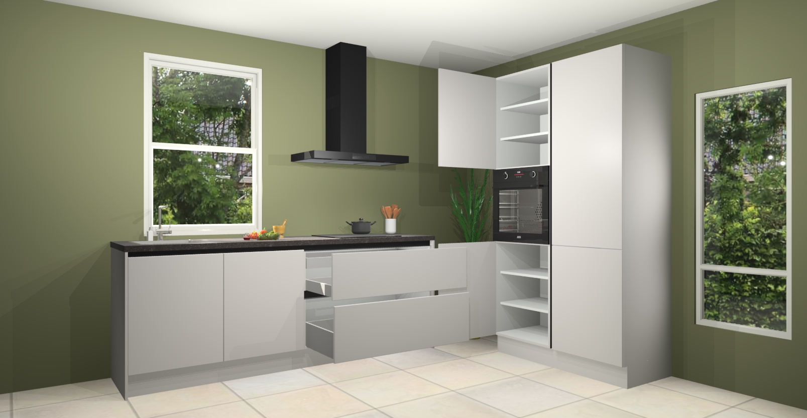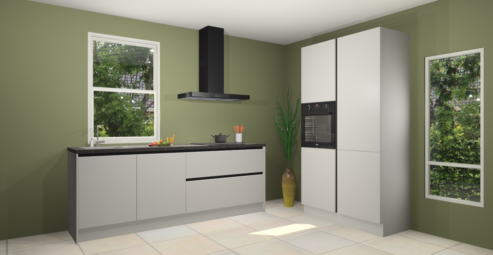 De Zijdegrijze greeploze keuken Monaco heeft voldoende opbergruimte om uw keukenbenodigdheden georganiseerd en netjes te houden. Geniet van het gemak van de soft-close deuren, die deze stijlvolle look perfect afmaken. Maar dat is nog niet alles. Met de Zijdegrijze greeploze keuken Monaco krijgt u maar liefst 5 ingebouwde apparaten: een oven, inductiekookplaat, afzuigkap, vaatwasser en koelkast. Deze kunnen gemakkelijk worden geüpgraded naar AEG als ze besteld zijn.