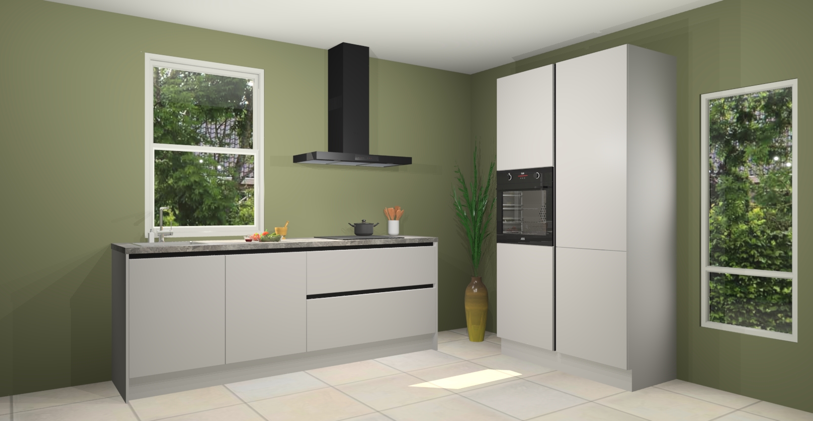 De Zijdegrijze greeploze keuken Monaco heeft voldoende opbergruimte om uw keukenbenodigdheden georganiseerd en netjes te houden. Geniet van het gemak van de soft-close deuren, die deze stijlvolle look perfect afmaken. Maar dat is nog niet alles. Met de Zijdegrijze greeploze keuken Monaco krijgt u maar liefst 5 ingebouwde apparaten: een oven, inductiekookplaat, afzuigkap, vaatwasser en koelkast. Deze kunnen gemakkelijk worden geüpgraded naar AEG als ze besteld zijn.