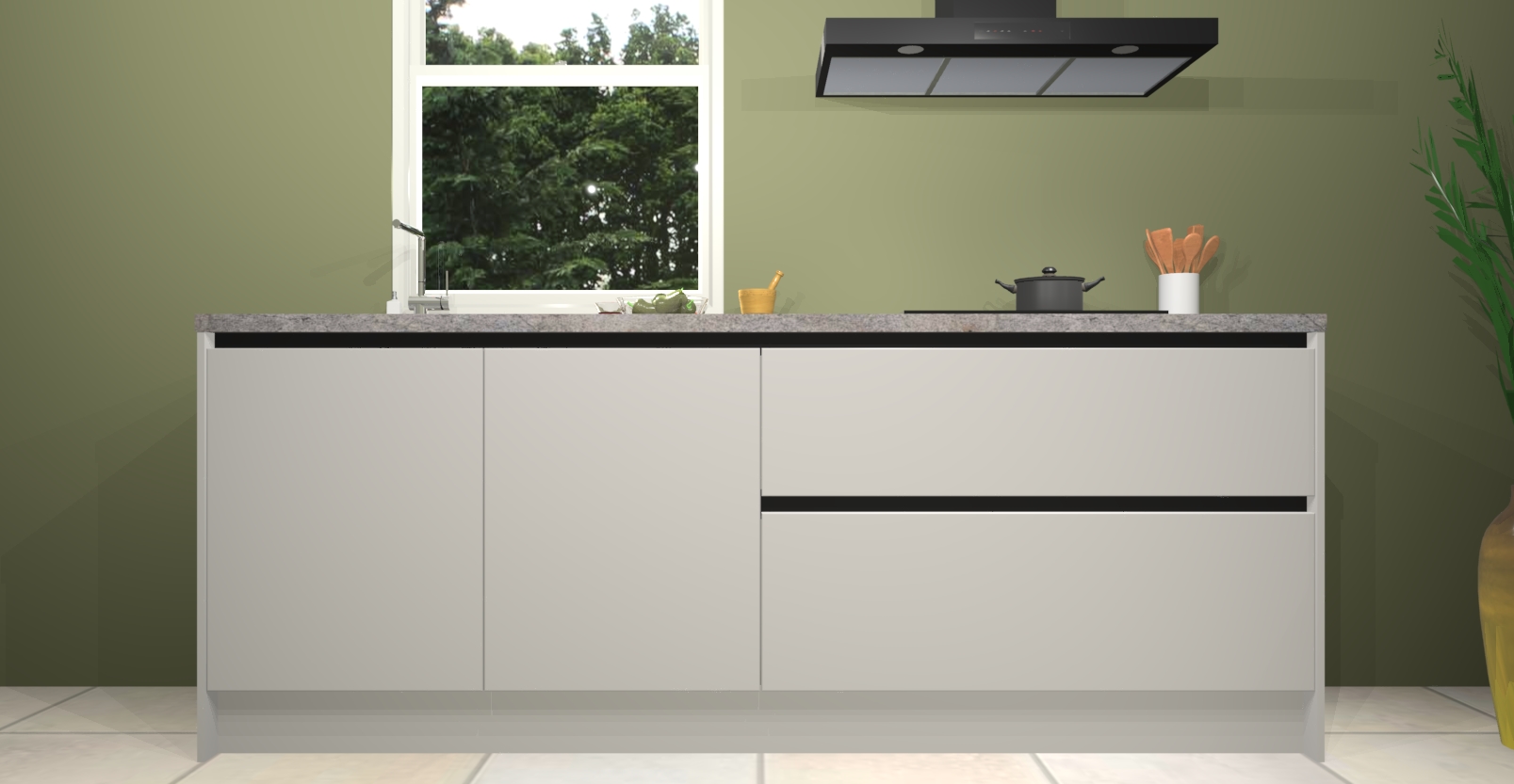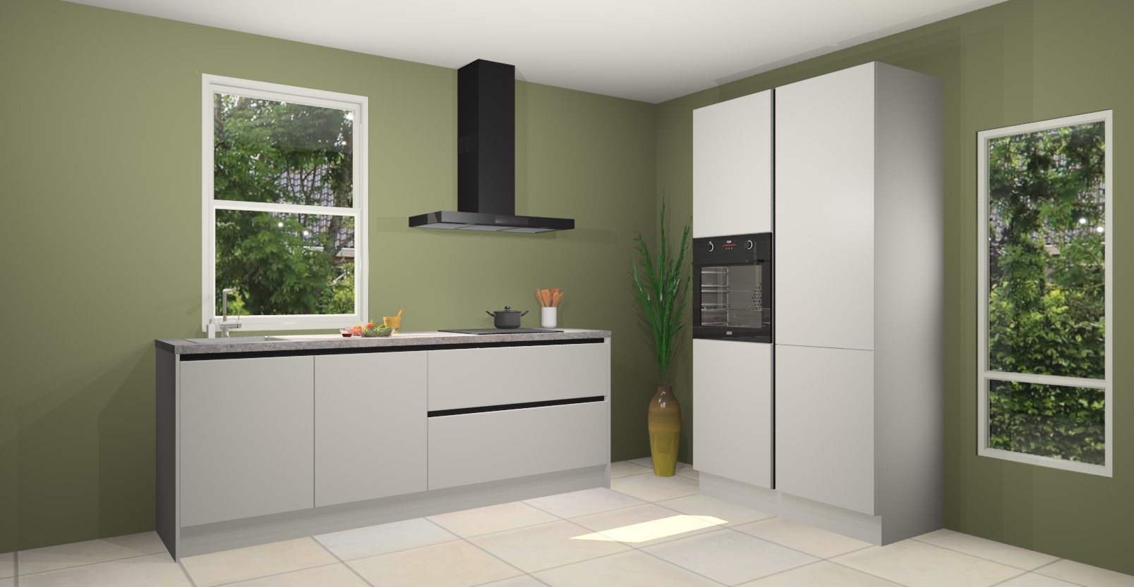 De Zijdegrijze greeploze keuken Monaco heeft voldoende opbergruimte om uw keukenbenodigdheden georganiseerd en netjes te houden. Geniet van het gemak van de soft-close deuren, die deze stijlvolle look perfect afmaken. Maar dat is nog niet alles. Met de Zijdegrijze greeploze keuken Monaco krijgt u maar liefst 5 ingebouwde apparaten: een oven, inductiekookplaat, afzuigkap, vaatwasser en koelkast. Deze kunnen gemakkelijk worden geüpgraded naar AEG als ze besteld zijn.