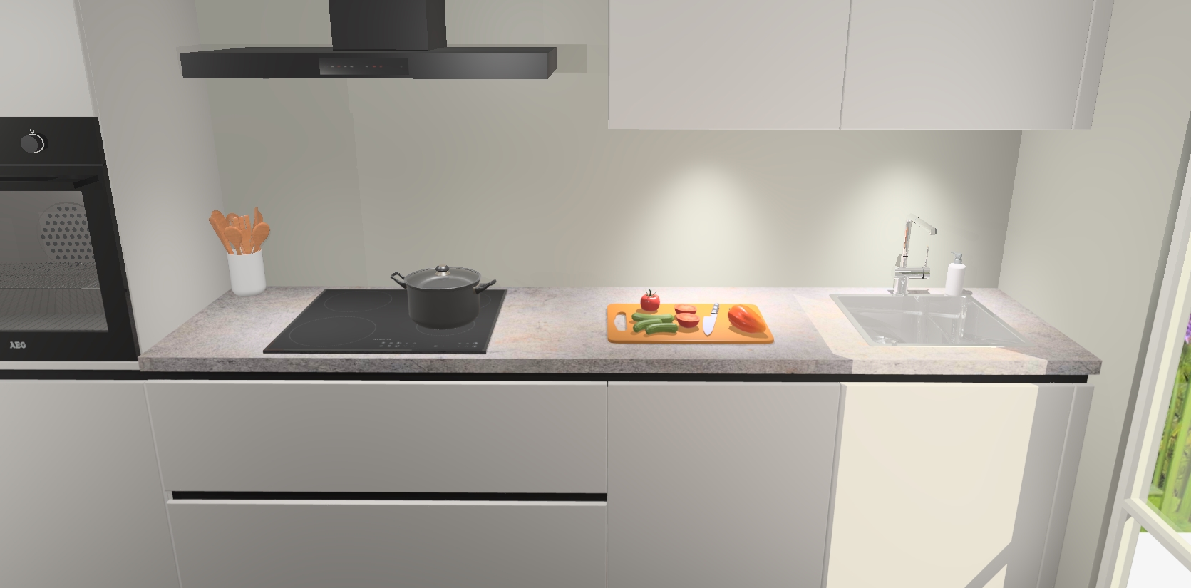 - Uitsparing van kookplaat, spoelbak en kraan dient u zelf te verzorgen.