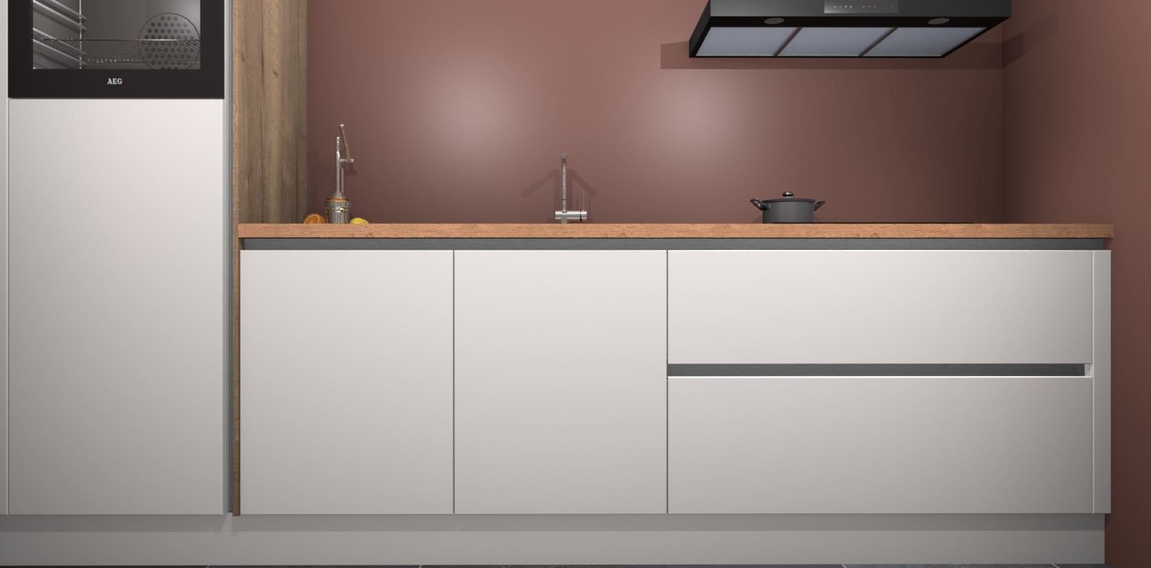 Inclusief plinten, stelpoten en werkblad