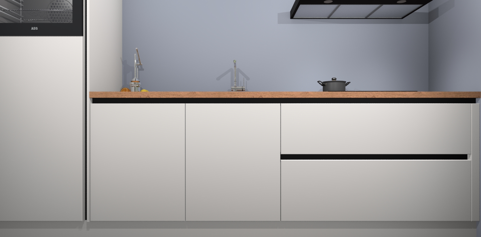 Inclusief plinten, stelpoten en werkblad