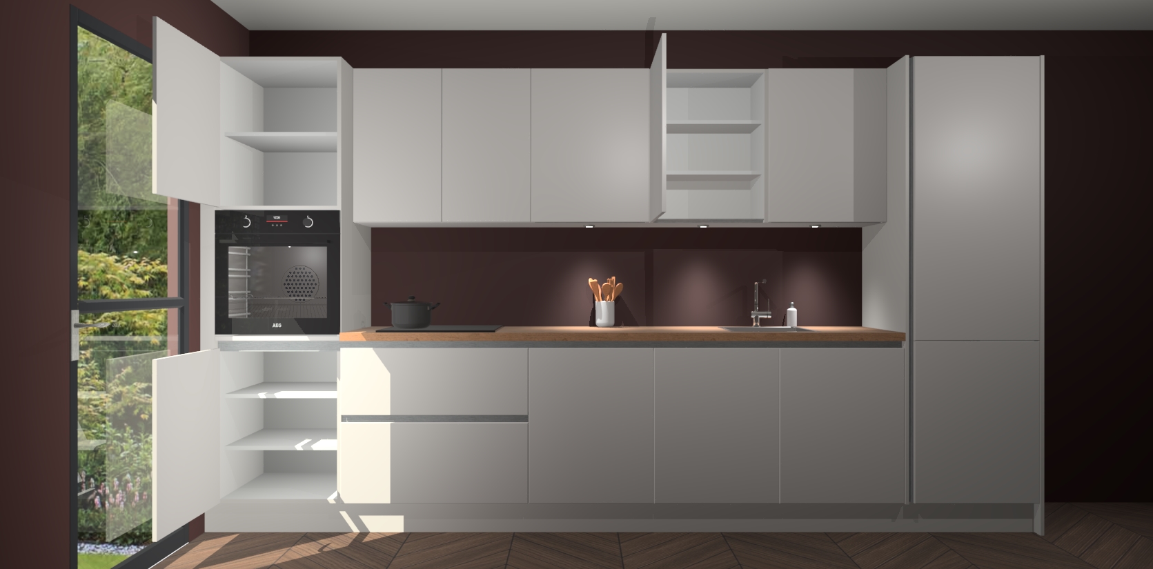 Dit is de perfecte keuken voor wie op zoek is naar een luxueuze stijl zonder zijn portemonnee te legen! Het chique ontwerp van de zijdegrijze greeploze keuken Wels voegt dat vleugje verfijning toe aan elk huis. Het gemak van voorgemonteerde kasten bespaart u talloze uren tijd en energie, zodat u veel sneller dan verwacht kunt beginnen te genieten van uw prachtige nieuwe keuken. Bovendien bedraagt de levertijd slechts 7 weken.