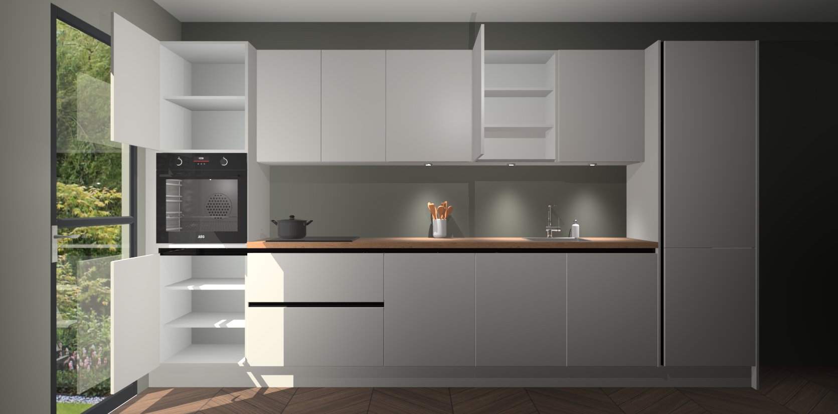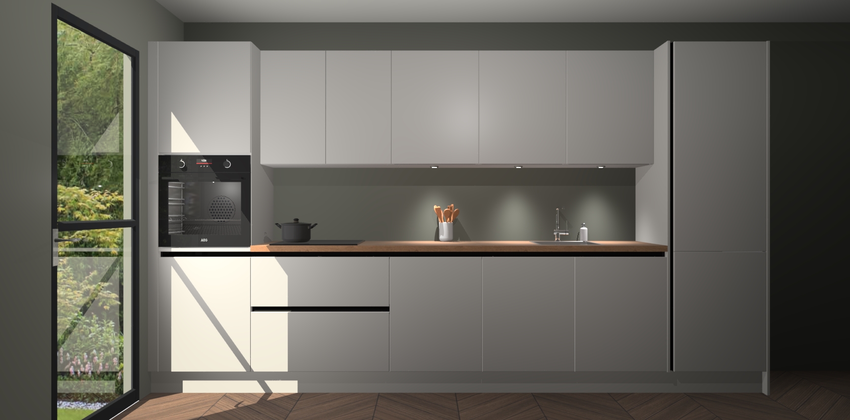 Dit is de perfecte keuken voor wie op zoek is naar een luxueuze stijl zonder zijn portemonnee te legen! Het chique ontwerp van de zijdegrijze greeploze keuken Wels voegt dat vleugje verfijning toe aan elk huis. Het gemak van voorgemonteerde kasten bespaart u talloze uren tijd en energie, zodat u veel sneller dan verwacht kunt beginnen te genieten van uw prachtige nieuwe keuken. Bovendien bedraagt de levertijd slechts 7 weken.