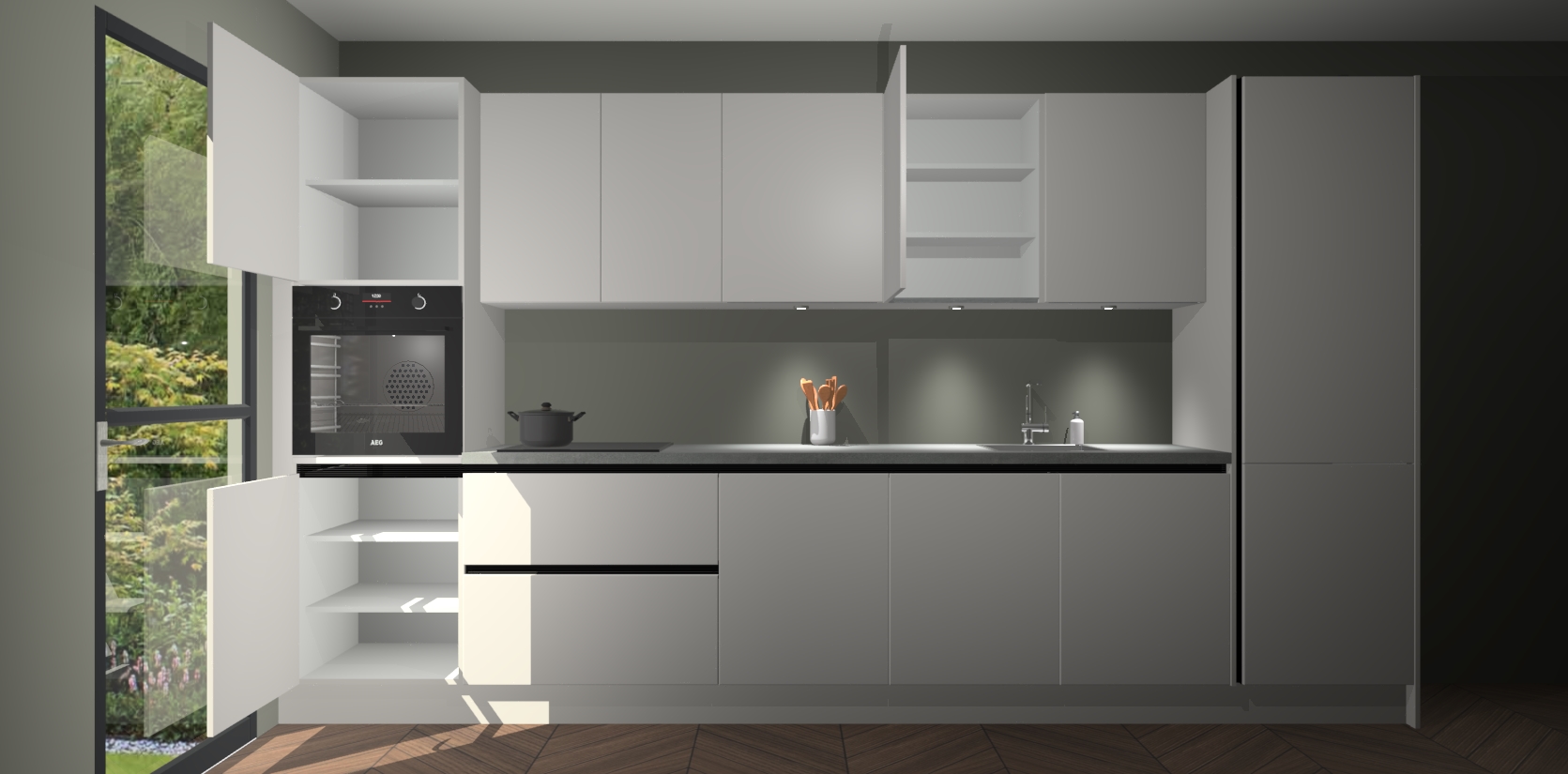 Dit is de perfecte keuken voor wie op zoek is naar een luxueuze stijl zonder zijn portemonnee te legen! Het chique ontwerp van de zijdegrijze greeploze keuken Wels voegt dat vleugje verfijning toe aan elk huis. Het gemak van voorgemonteerde kasten bespaart u talloze uren tijd en energie, zodat u veel sneller dan verwacht kunt beginnen te genieten van uw prachtige nieuwe keuken. Bovendien bedraagt de levertijd slechts 7 weken.