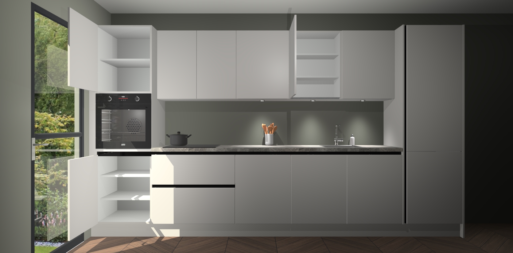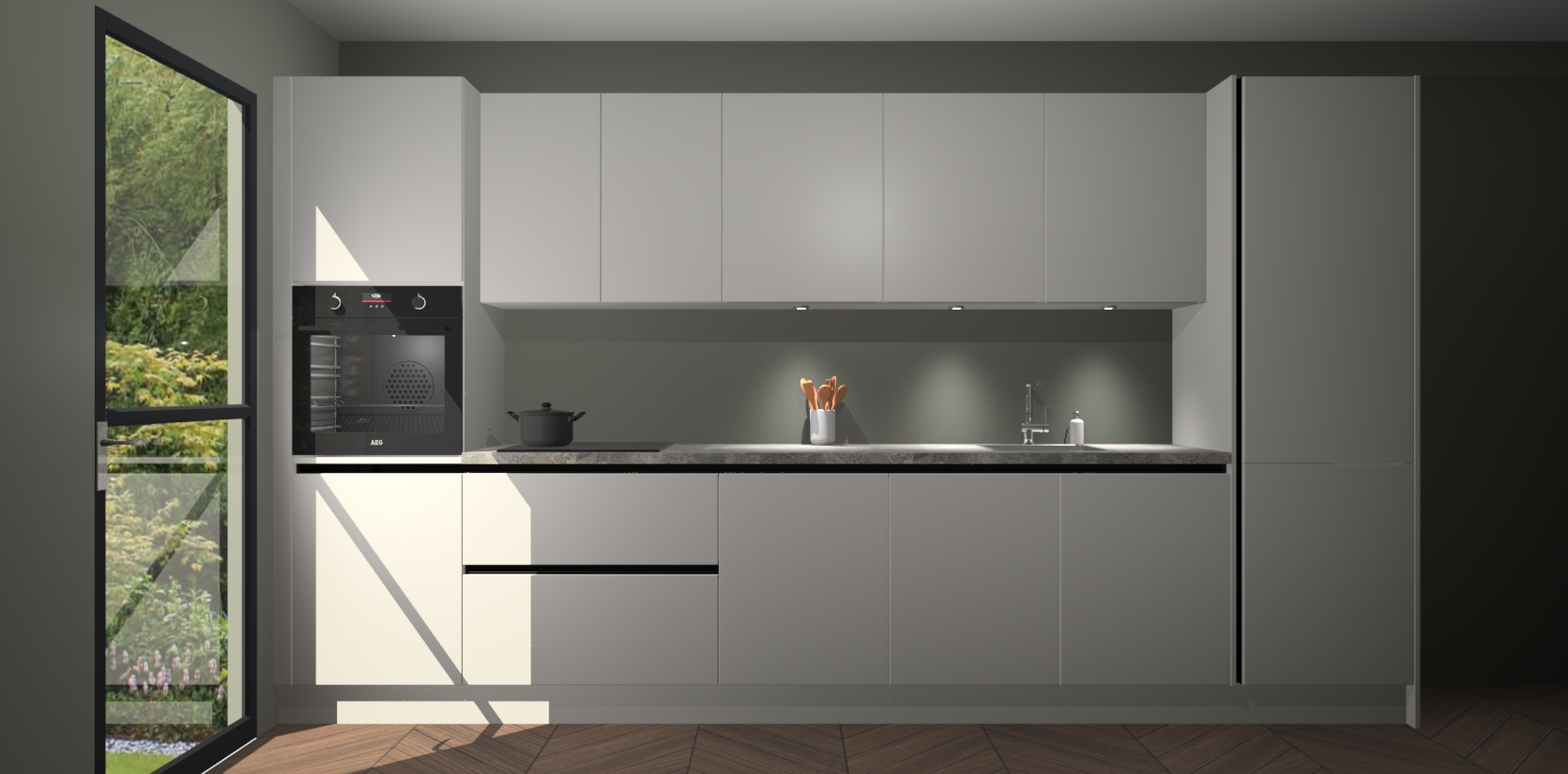 Dit is de perfecte keuken voor wie op zoek is naar een luxueuze stijl zonder zijn portemonnee te legen! Het chique ontwerp van de zijdegrijze greeploze keuken Wels voegt dat vleugje verfijning toe aan elk huis. Het gemak van voorgemonteerde kasten bespaart u talloze uren tijd en energie, zodat u veel sneller dan verwacht kunt beginnen te genieten van uw prachtige nieuwe keuken. Bovendien bedraagt de levertijd slechts 7 weken.