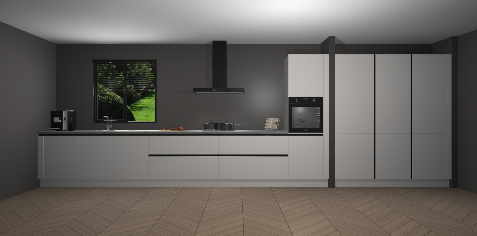 Een stijlvolle en praktische keuken als deze mag gezien worden. Dankzij de prachtige matte afwerking wordt de keuken gemakkelijk het middelpunt van uw huis - hij ziet er geweldig uit onder allerlei lichtomstandigheden, van dag tot nacht!