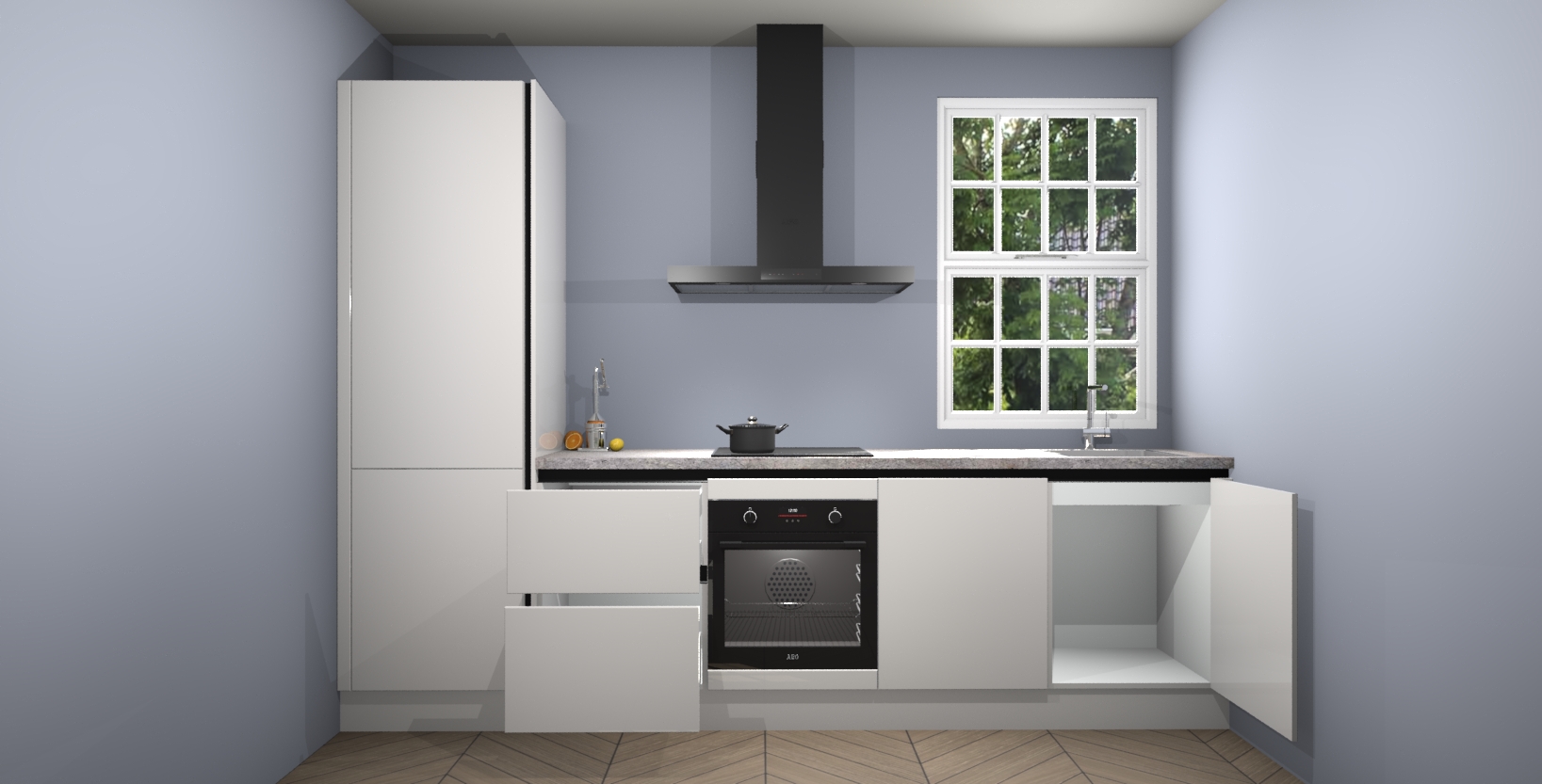 Inclusief plinten, stelpoten en werkblad