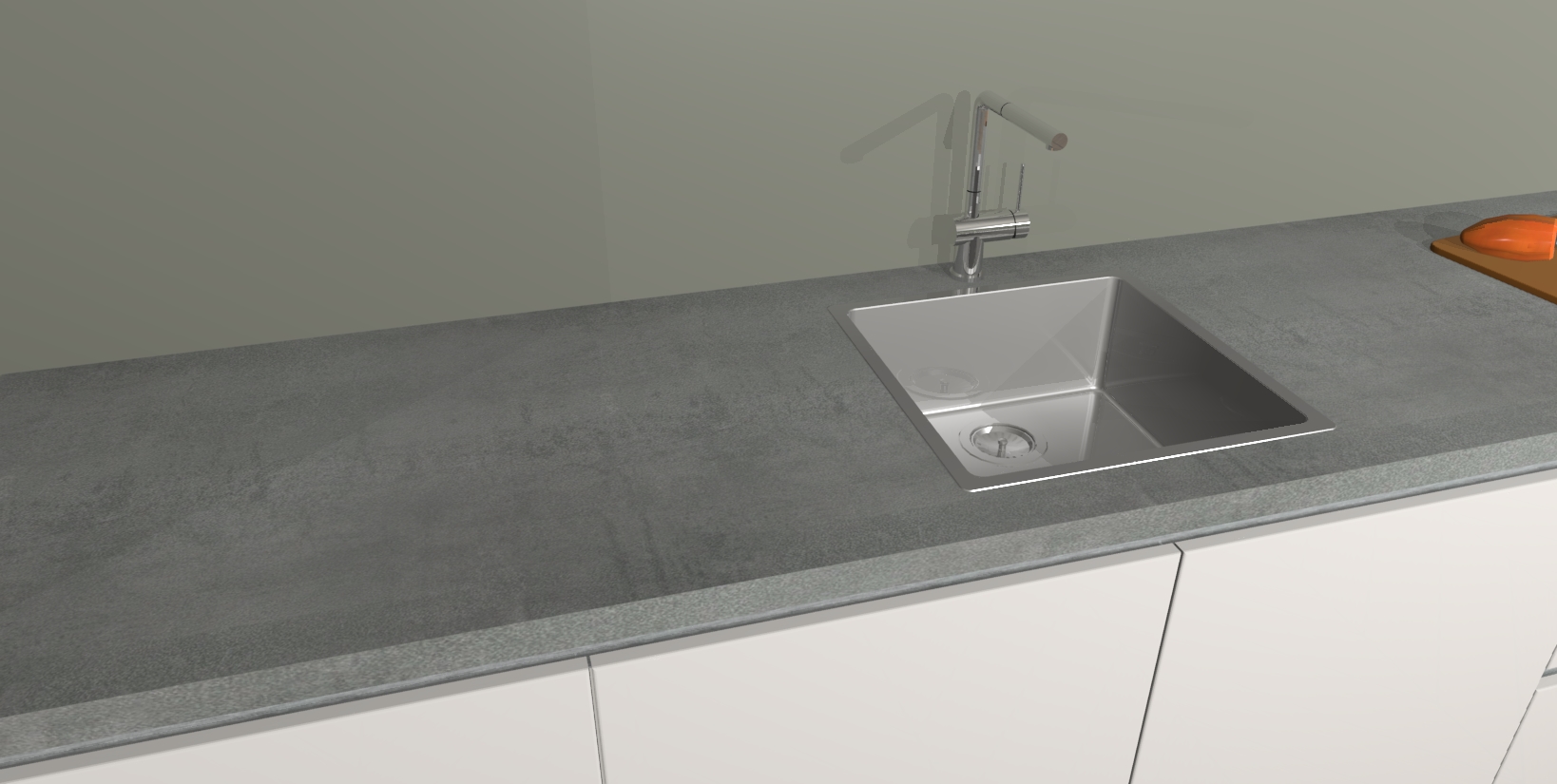 - De spoelbak is nog niet in gevreesd. Dit dient tijdens het werk gedaan te worden