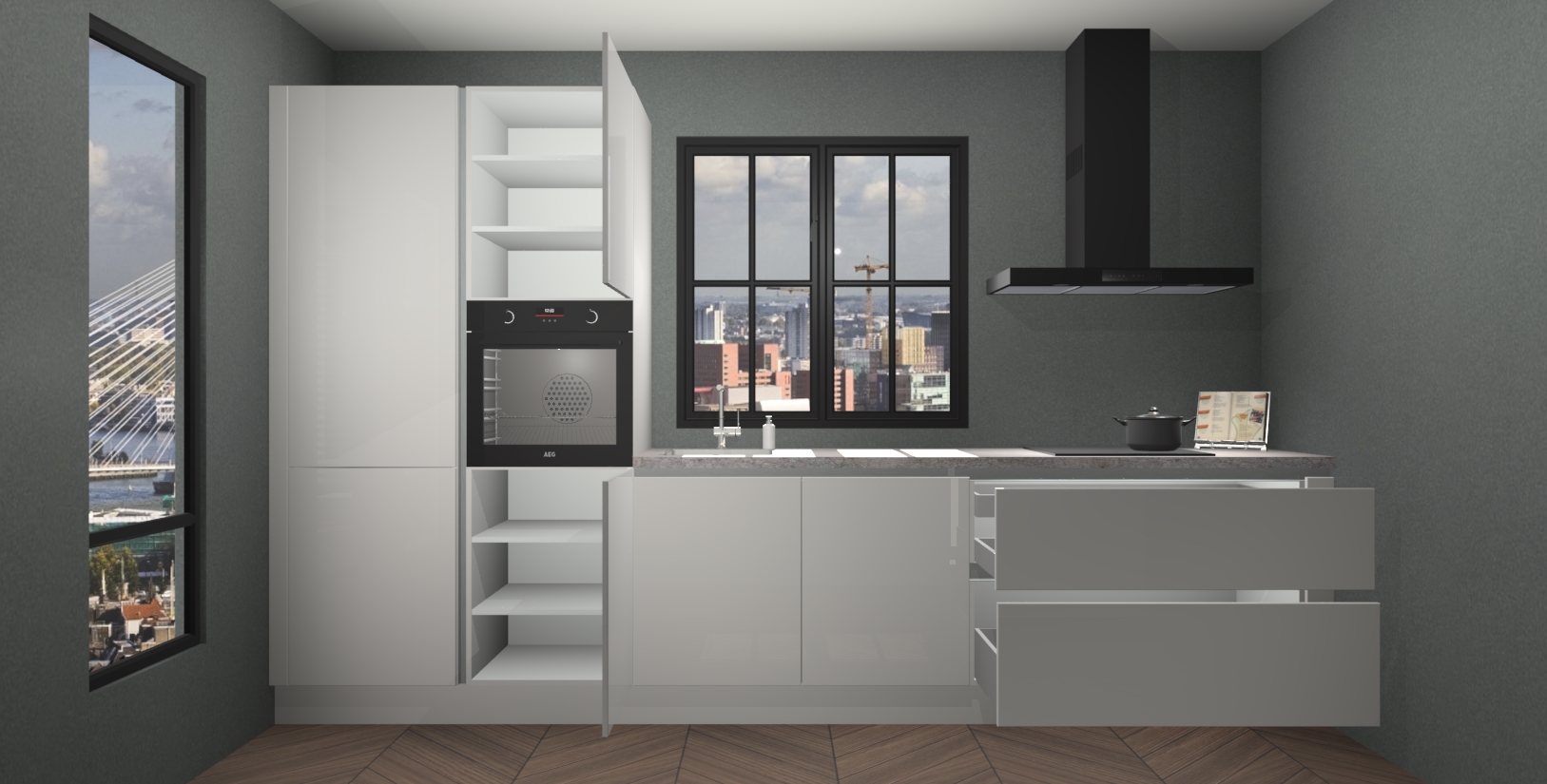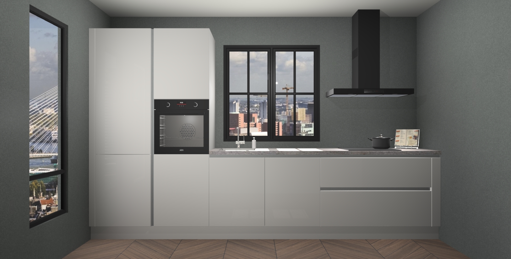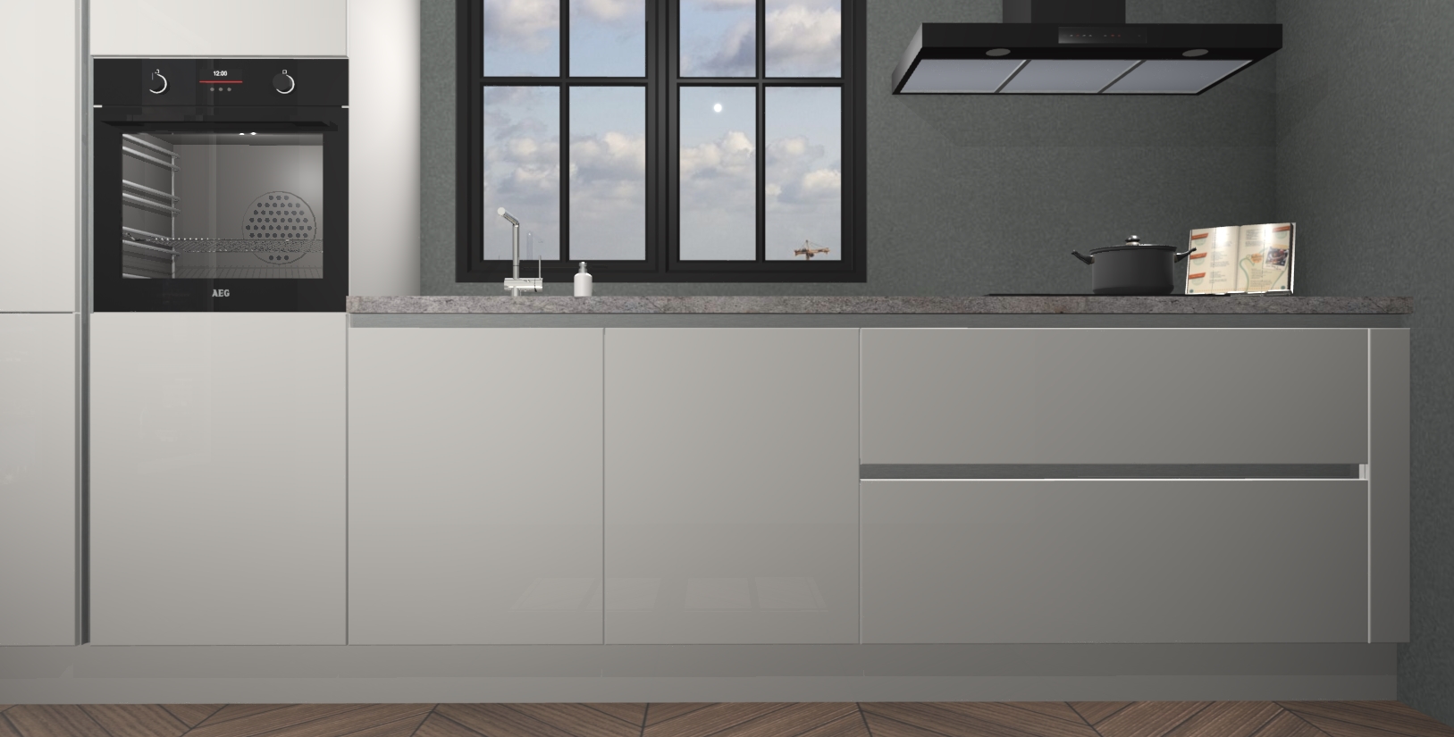 De glanzende afwerking van de deuren is gemaakt met behulp van geavanceerde coatingtechnologie, waardoor schoonmaken na het eten eenvoudig en efficiënt is. Bovendien zijn er geen handgrepen nodig, waardoor deze keuken zowel modern als verfijnd is. Of u nu op zoek bent naar een minimalistische toevoeging aan een hedendaags huis of naar iets stijlvollers en tijdlozers in een traditionele huiselijke omgeving, onze Zijdegrijze hoogglans keuken Brussel is een geweldige oplossing.