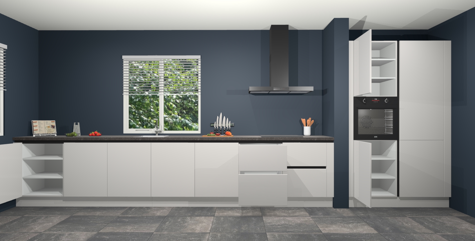 In deze box zijn alle kleuren verzameld van de deuren en werkbladen. Vraag de gratis kleurenbox aan en kijk thuis rustig verder!