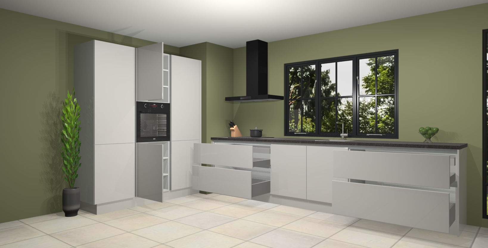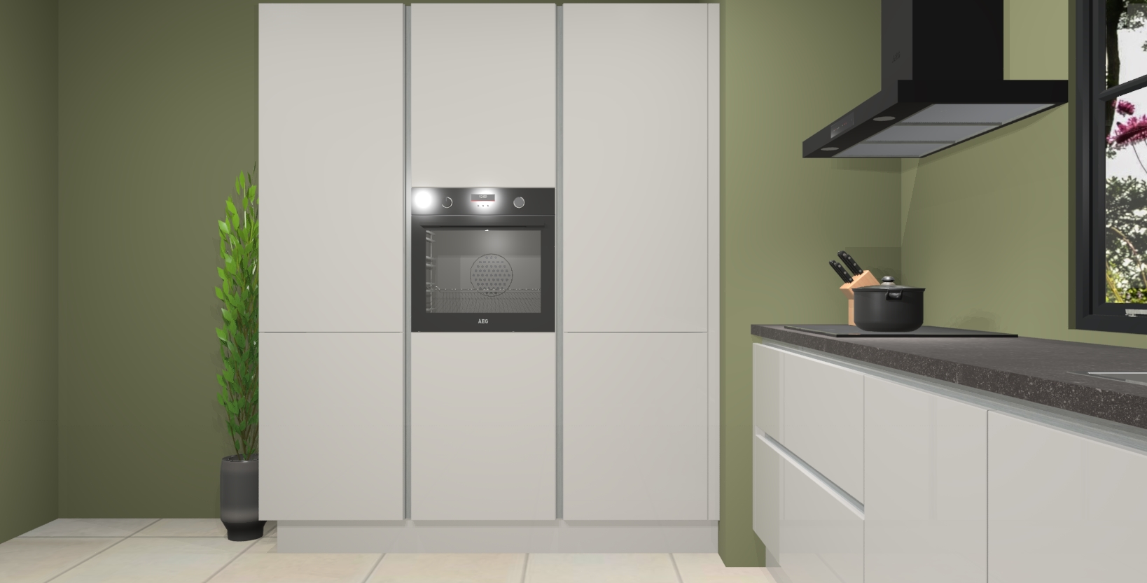 De softclose deuren openen en sluiten is ook heel eenvoudig - geniet van een moeiteloze keukenervaring, zelfs als er kinderen rondlopen. Voor extra gemak bij het plaatsen van uw bestelling bieden we ook een upgrade naar een kookplaat met geïntegreerde afzuiging.