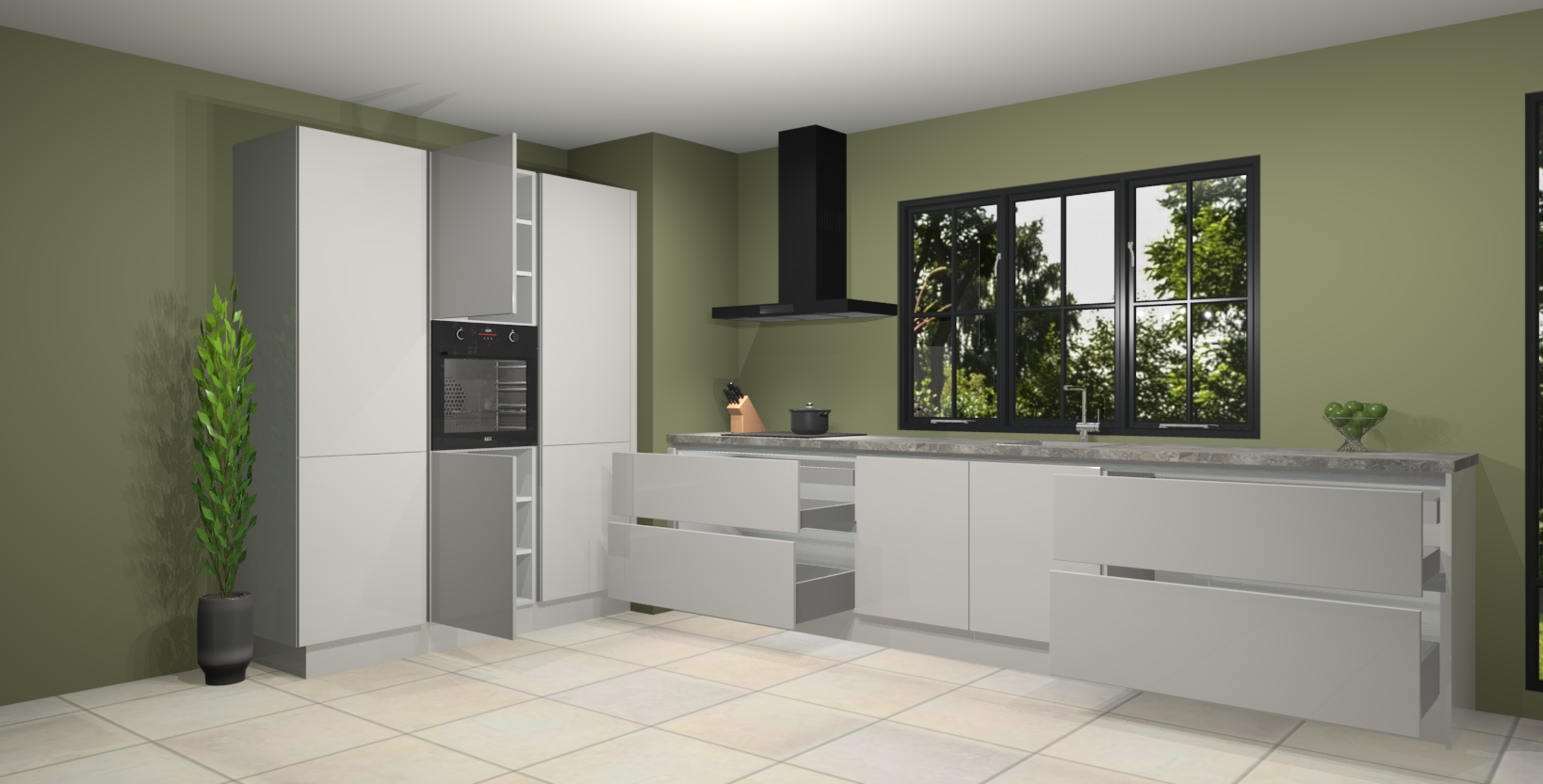 De softclose deuren openen en sluiten is ook heel eenvoudig - geniet van een moeiteloze keukenervaring, zelfs als er kinderen rondlopen. Voor extra gemak bij het plaatsen van uw bestelling bieden we ook een upgrade naar een kookplaat met geïntegreerde afzuiging.