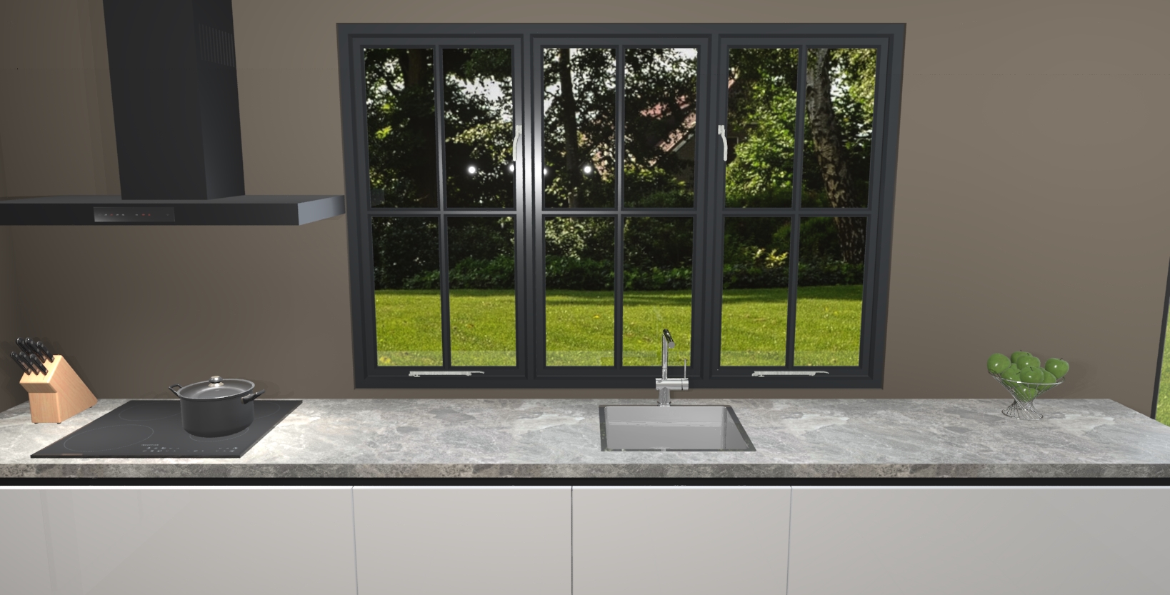De softclose deuren openen en sluiten is ook heel eenvoudig - geniet van een moeiteloze keukenervaring, zelfs als er kinderen rondlopen. Voor extra gemak bij het plaatsen van uw bestelling bieden we ook een upgrade naar een kookplaat met geïntegreerde afzuiging.