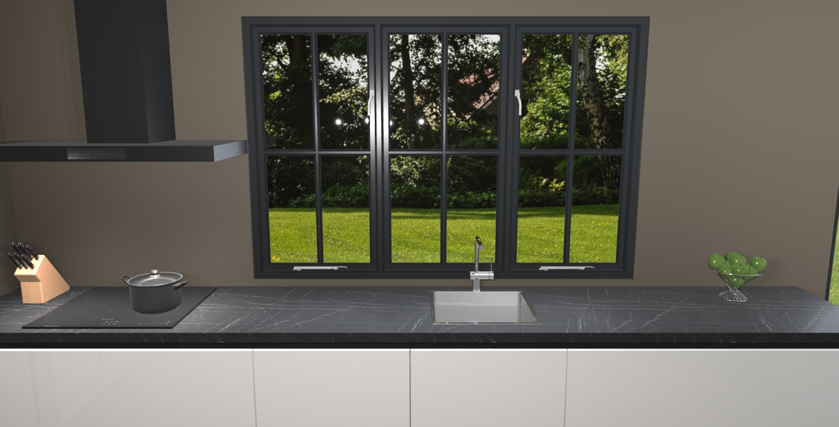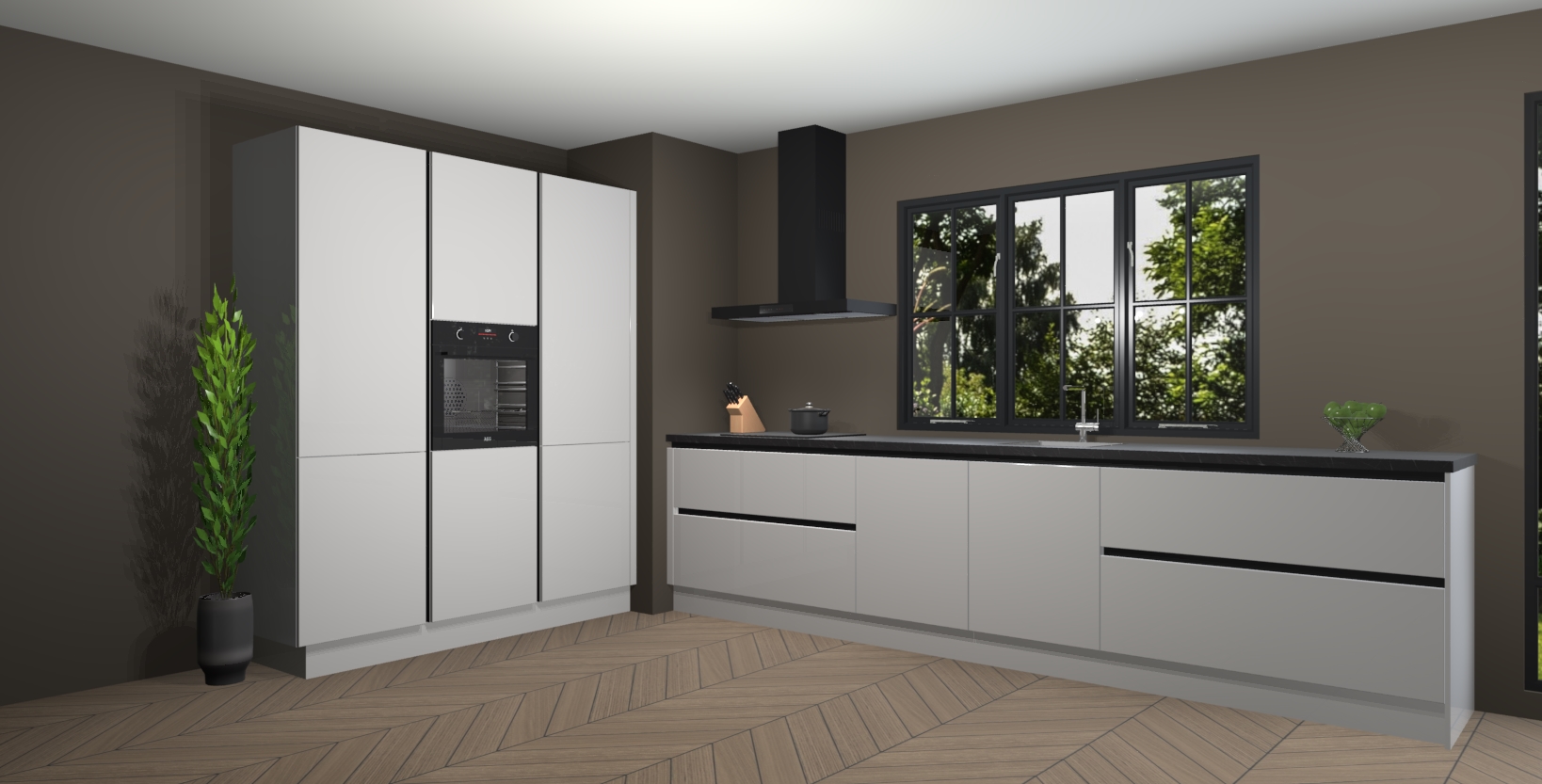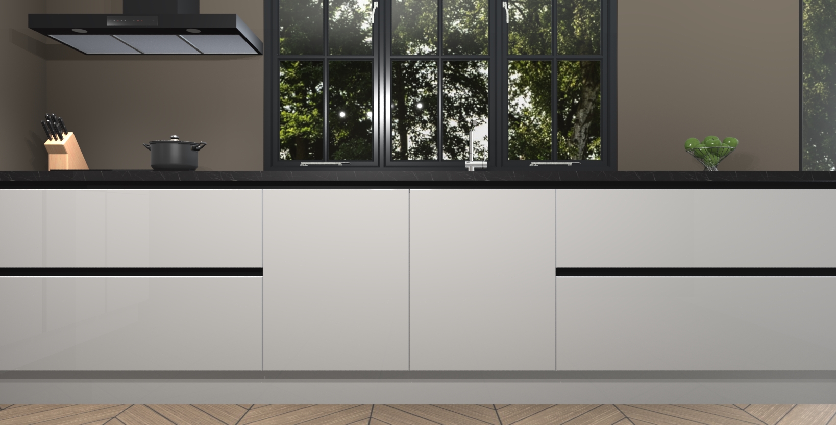 De softclose deuren openen en sluiten is ook heel eenvoudig - geniet van een moeiteloze keukenervaring, zelfs als er kinderen rondlopen. Voor extra gemak bij het plaatsen van uw bestelling bieden we ook een upgrade naar een kookplaat met geïntegreerde afzuiging.