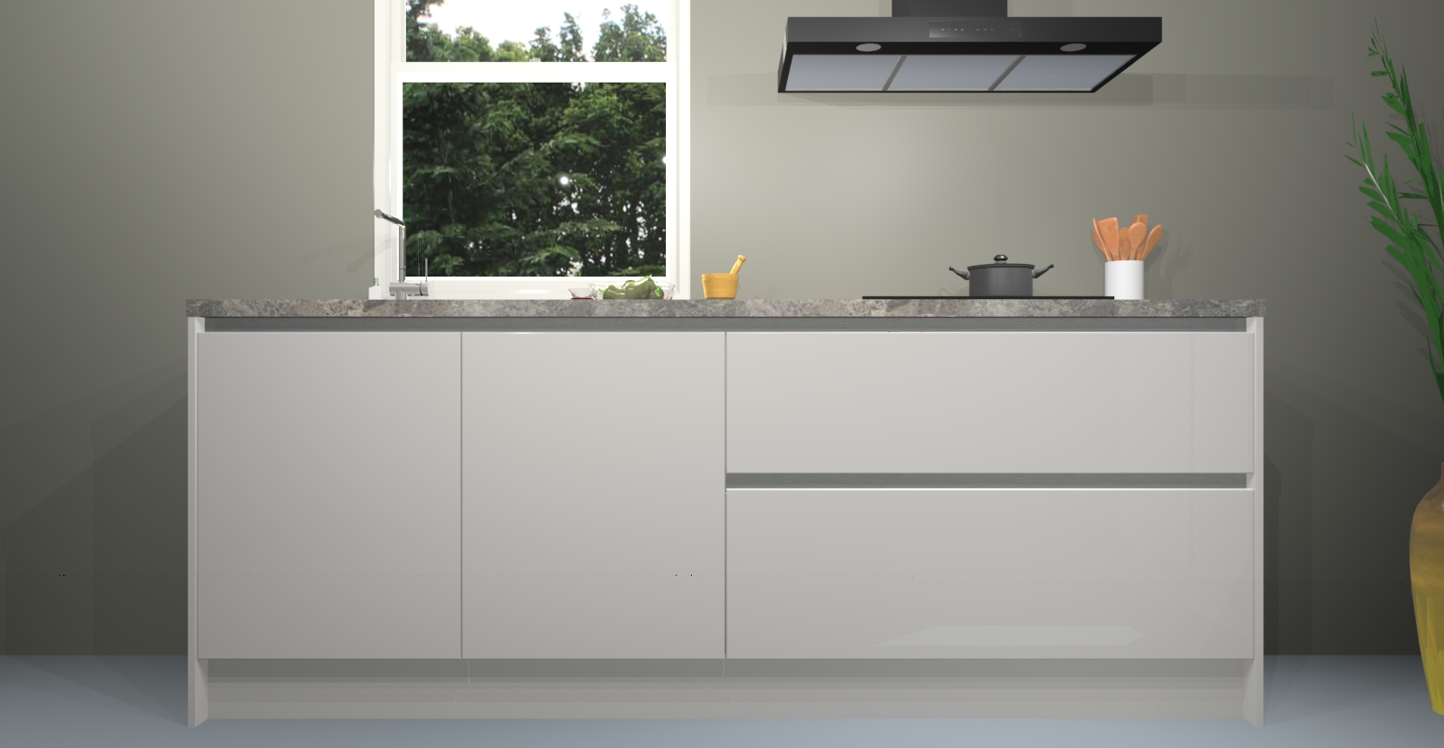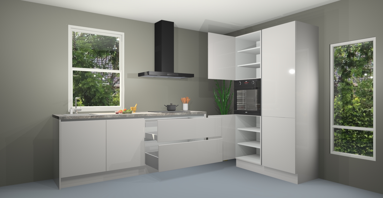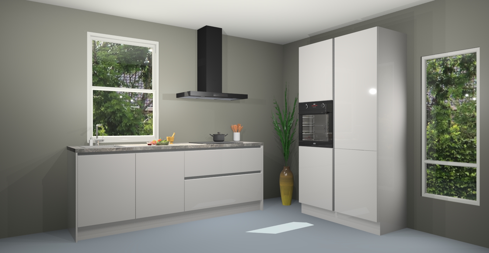 De Zijdegrijze hoogglans greeploze keuken Monaco heeft voldoende opbergruimte om uw keukenbenodigdheden georganiseerd en netjes te houden. Geniet van het gemak van de soft-close deuren, die deze stijlvolle look perfect afmaken. Maar dat is nog niet alles. Met de Zijdegrijze hoogglans greeploze keuken Monaco krijgt u maar liefst 5 ingebouwde apparaten: een oven, inductiekookplaat, afzuigkap, vaatwasser en koelkast. Deze kunnen gemakkelijk worden geüpgraded naar AEG als ze besteld zijn.
