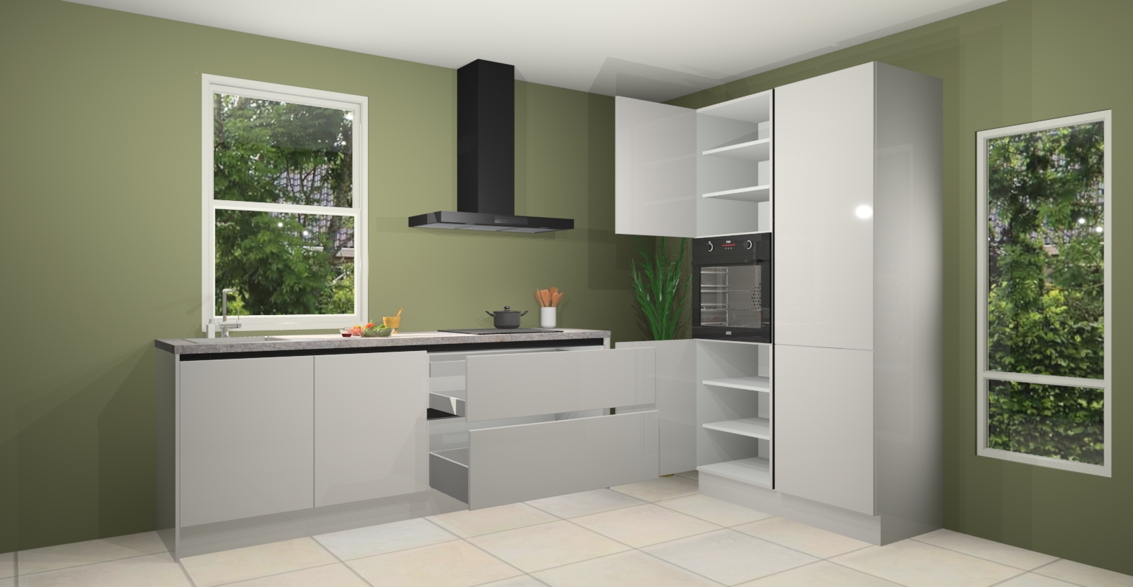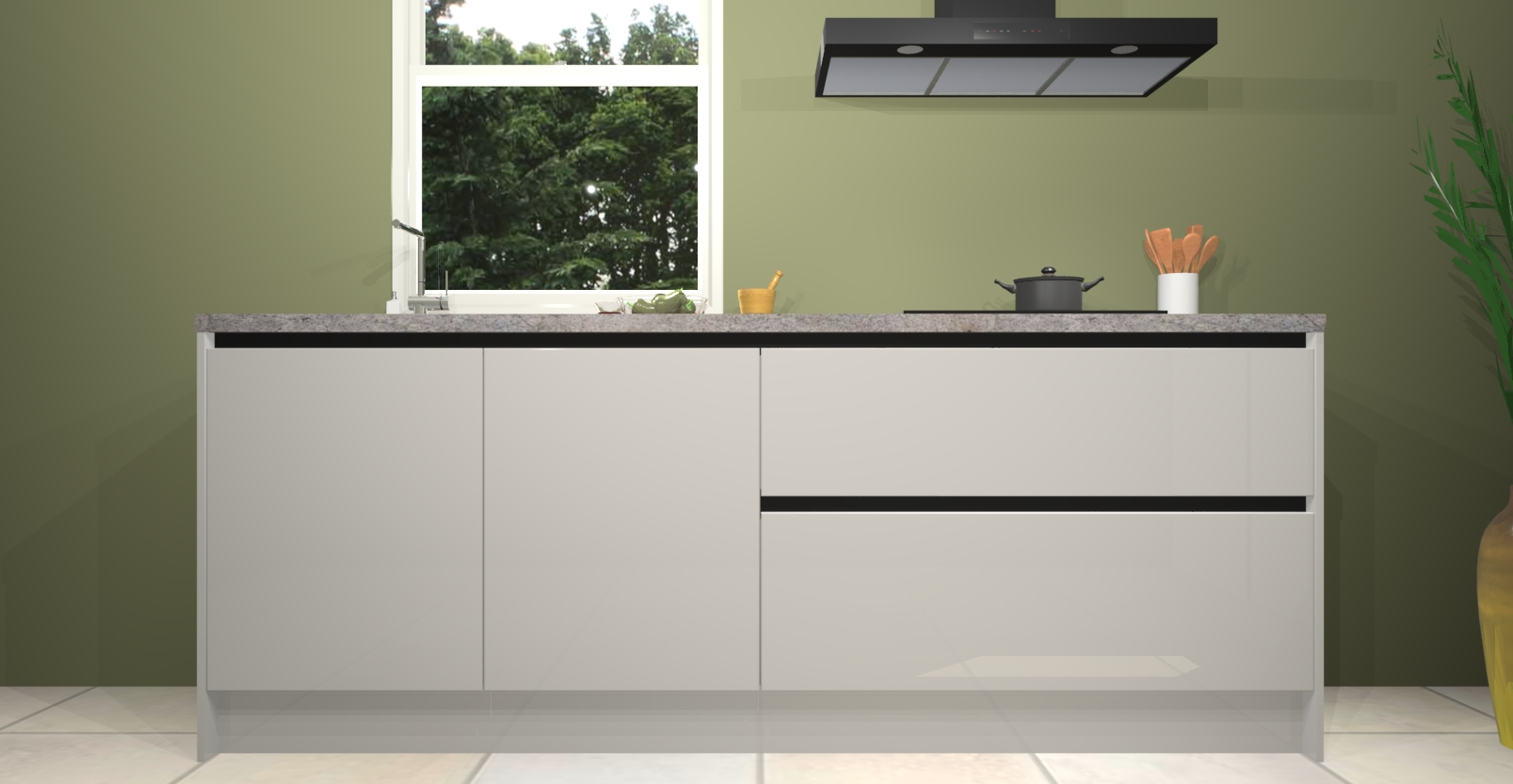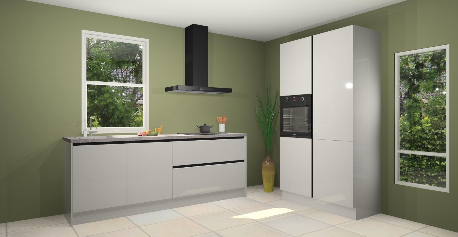 De Zijdegrijze hoogglans greeploze keuken Monaco heeft voldoende opbergruimte om uw keukenbenodigdheden georganiseerd en netjes te houden. Geniet van het gemak van de soft-close deuren, die deze stijlvolle look perfect afmaken. Maar dat is nog niet alles. Met de Zijdegrijze hoogglans greeploze keuken Monaco krijgt u maar liefst 5 ingebouwde apparaten: een oven, inductiekookplaat, afzuigkap, vaatwasser en koelkast. Deze kunnen gemakkelijk worden geüpgraded naar AEG als ze besteld zijn.