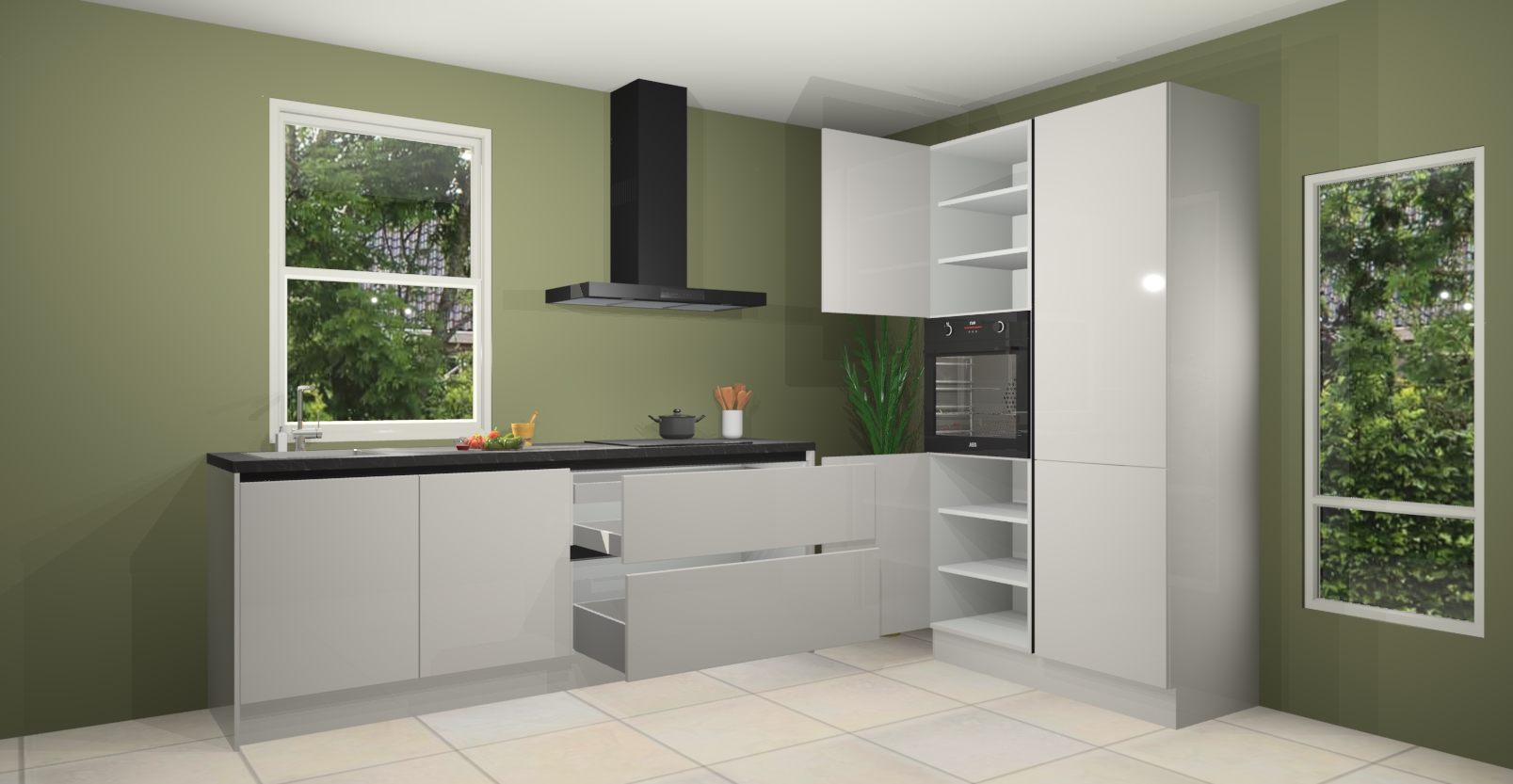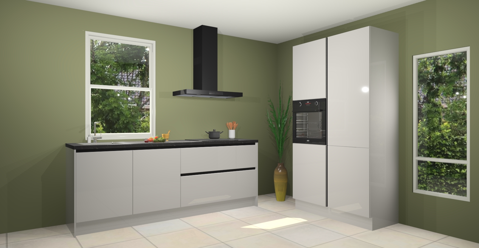 De Zijdegrijze hoogglans greeploze keuken Monaco heeft voldoende opbergruimte om uw keukenbenodigdheden georganiseerd en netjes te houden. Geniet van het gemak van de soft-close deuren, die deze stijlvolle look perfect afmaken. Maar dat is nog niet alles. Met de Zijdegrijze hoogglans greeploze keuken Monaco krijgt u maar liefst 5 ingebouwde apparaten: een oven, inductiekookplaat, afzuigkap, vaatwasser en koelkast. Deze kunnen gemakkelijk worden geüpgraded naar AEG als ze besteld zijn.