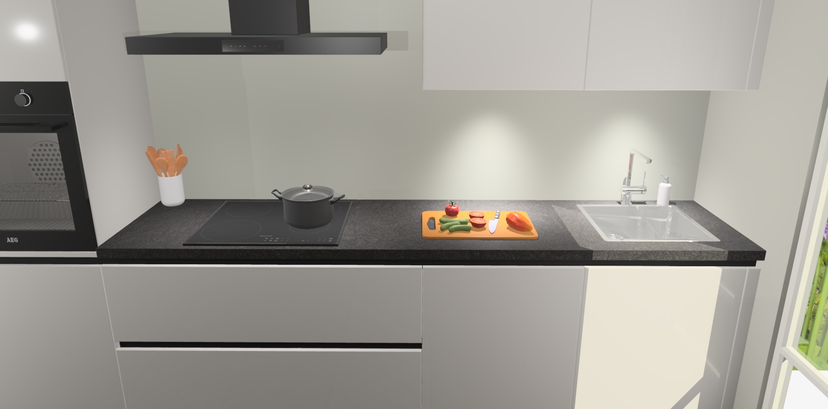 - Uitsparing van kookplaat, spoelbak en kraan dient u zelf te verzorgen.