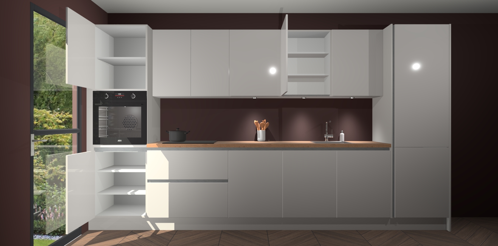 Dit is de perfecte keuken voor wie op zoek is naar een luxueuze stijl zonder zijn portemonnee te legen! Het chique ontwerp van de zijdegrijze hoogglans greeploze keuken Wels voegt dat vleugje verfijning toe aan elk huis. Het gemak van voorgemonteerde kasten bespaart u talloze uren tijd en energie, zodat u veel sneller dan verwacht kunt beginnen te genieten van uw prachtige nieuwe keuken. Bovendien bedraagt de levertijd slechts 7 weken.